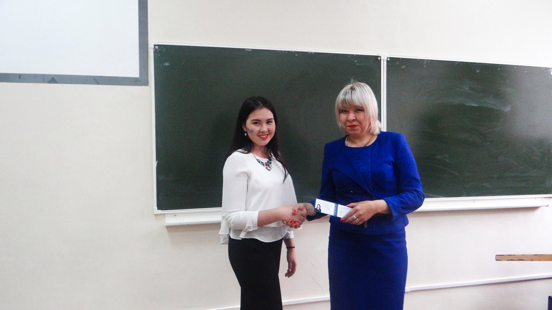 По окончании прохождения всех станций, состоялось торжественное вручение студенческих билетов. Декан ФБФ Луиза Хамзиновна Самситова поприветствовала и поздравила всех первокурсников, пожелала отличной учебы, оптимизма и веры в себя, стремления к лучшему.