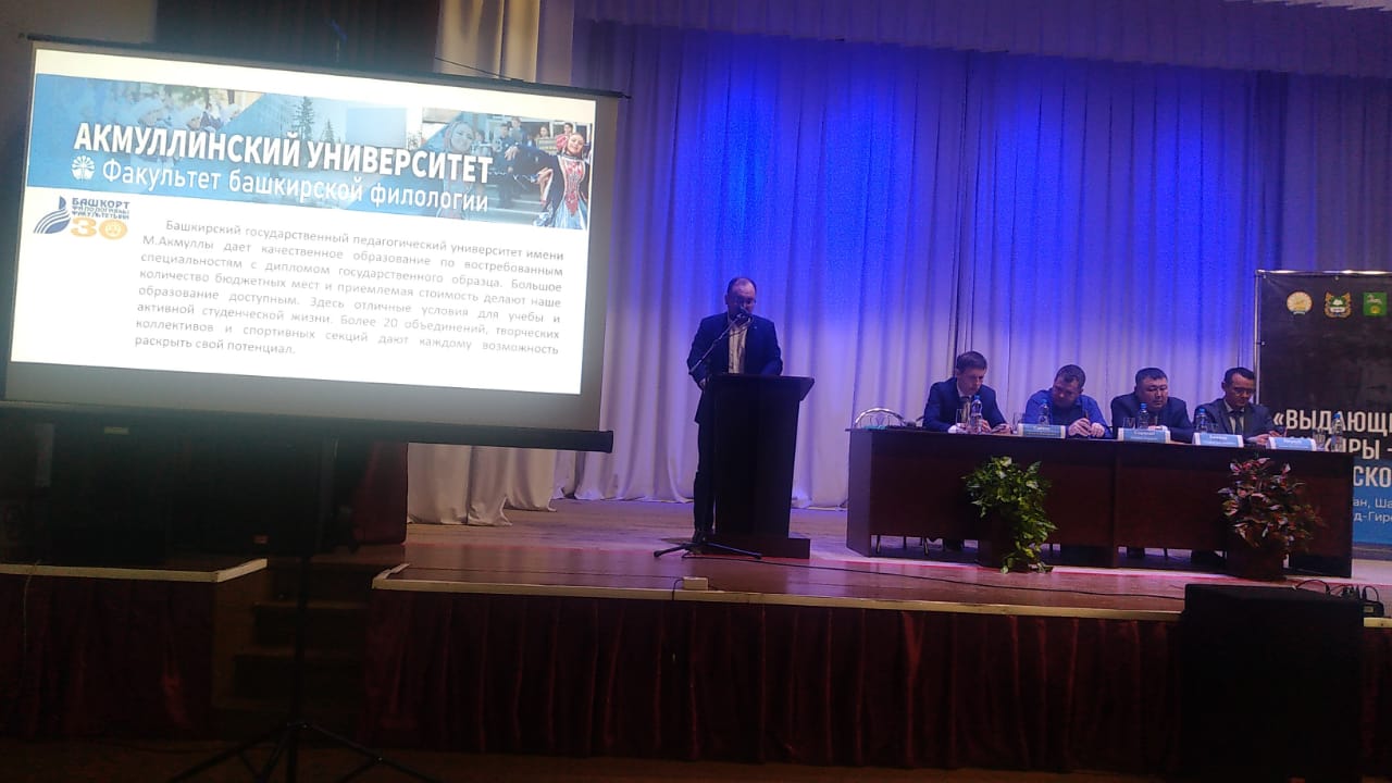 Старший преподаватель кафедры башкирского языка и литературы БГПУ им. М. Акмуллы, к.ф.н. А.Ю. Куланчин принял участие в мероприятиях, посвященных выдающимся башкирам - уроженцам Курганской земли. Айтуган Юмабаевич провел профориентационную работу с учащимися школ Альменевского района Курганской области и их родителями. Он также выступил с докладом о деятельности факультета башкирской филологии БГПУ им. М. Акмуллы в совещании, где участвовали представители администрации Курганской области и активисты общественных организаций. В рамках данной поездки А.Ю Куланчин принял участие в круглом столе «Челябинские башкиры: история и современность» в г. Челябинске, организатором которого выступил Башкирский историко-культурный центр в Челябинской области – филиал ГБУ Дома Дружбы народов Республики Башкортостан. Факультет башкирской филологии БГПУ им. М. Акмуллы выражает огромную благодарность Всемирному курултаю (конгрессу) башкир и Представительству Республики Башкортостан в Уральском федеральном округе и Пермском крае за возможность участия в данных мероприятиях.