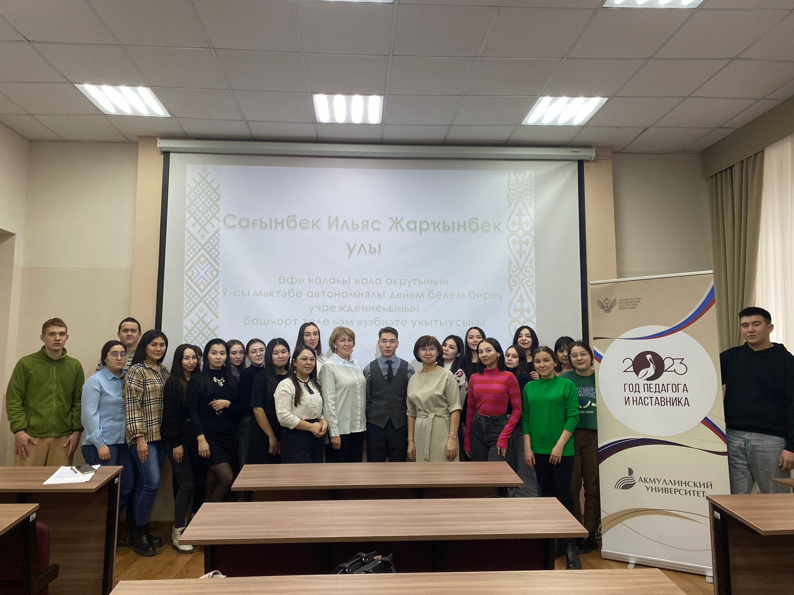 28 марта на факультете башкирской филологии прошел мастер-класс  Сагынбек И. Ж., учителя башкирского языка и литературы МАОУ “Школа №9” (г.Уфа), выпускника факультета башкирской филологии, победителя в номинации “Педагогическая надежда” Межрегионального конкурса “Учитель башкирского языка и литературы –2023”.