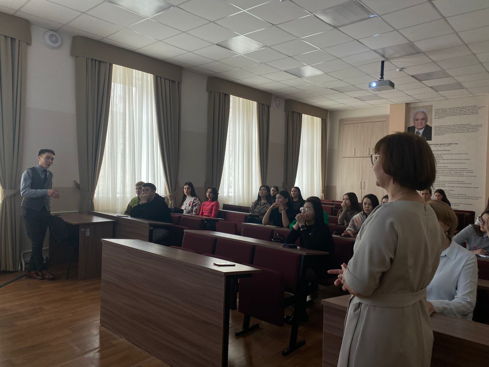 Ильяс Жаркымбекулы рассказал, как стать успешным педагогом, как мотивировать русскоязычных детей изучать башкирский язык. Встреча прошла в очень теплой атмосфере, от студентов прозвучали интересные вопросы, на которые были получены ответы.
