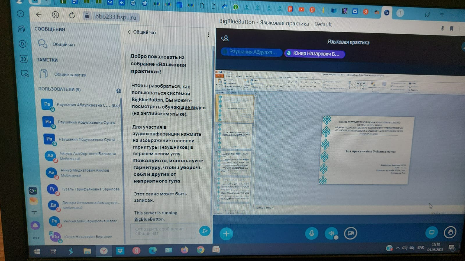 29 апреля на кафедре башкирского языка и литературы факультета башкирской филологии прошла итоговая онлайн-конференция по результатам прохождения учебной языковой практики для студентов-заочников 3 курса направления 44.03.01 «Педагогическое образование» направленности (профиля) «Родной (башкирский) язык и литература».