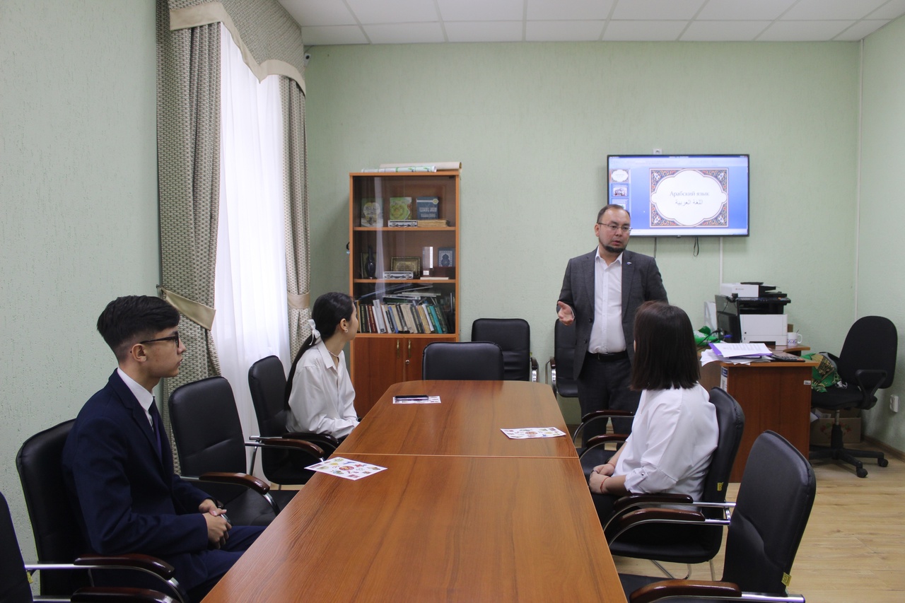 В Центре восточных языков факультета башкирской филологии участники познакомились с арабской каллиграфией. Руководитель Центра восточных языков, к.ф.н. А.Ю. Куланчин рассаказал гостям об особенностях изучения арабского языка в университете, продемонстрировал приложения для изучения арабского языка, в конце мастер-класса каждый смог написать свое имя красивым каллиграфическим почерком.
