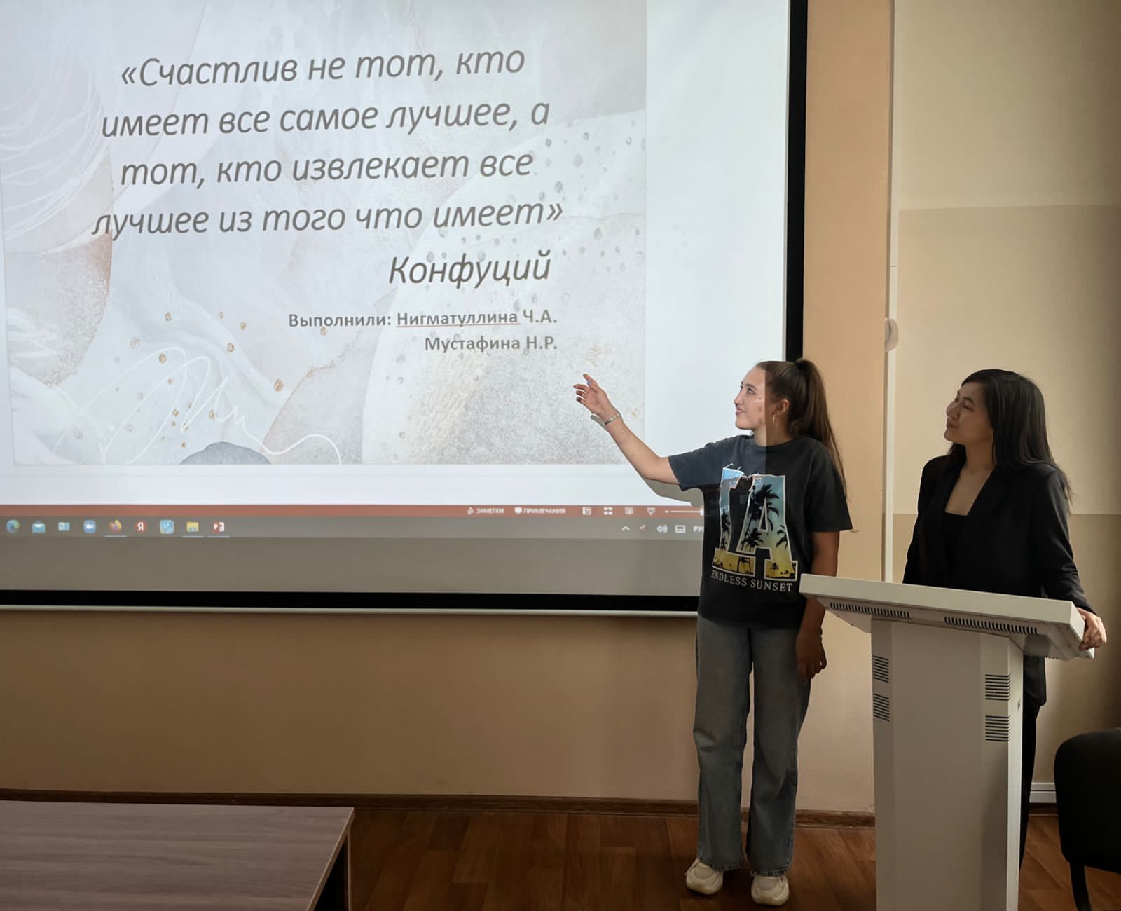 «Счастлив не тот, ко имеет все самое лучшее, а тот, кто извлекает все лучшее из того, что имеет» так называлось внеурочное занятие «Разговоры о важном» на факультете башкирской филологии, которое состоялось  26 мая 2023. Занятие было организовано и проведено студентами 4 курса гр. ПО-БЯ-АНЯ-41-19  Мустафиной Нафисой и Нигматуллиной Чулпан.