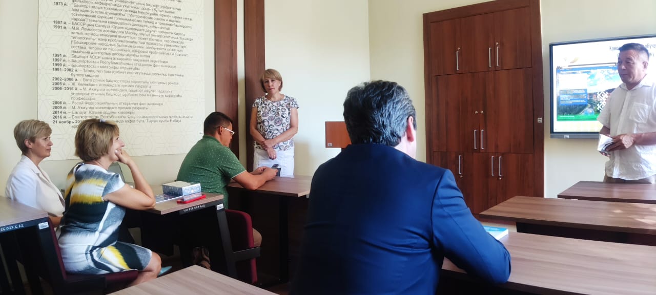 В рамках пребывания делегации Кабардино-Балкарской Республики в БГПУ им. М. Акмуллы Министр просвещения и науки Кабардино-Балкарской Республики АНЗОР КЛИШБИЕВИЧ ЕЗАОВ и замминистра МИСОСТОВА ЕКАТЕРИНА НИКОЛАЕВНА посетили факультет башкирской филологии. В именной аудитории Почетного профессора БГПУ им.  М.Акмуллы Марата Зайнуллина заведующая кафедрой башкирского языка и литературы Тагирова Салима Айбулатовна рассказала о роли факультета башкирской филологии в подготовке национальных кадров, ознакомила с программами подготовки бакалавров, магистрантов и аспирантов, курсов переподготовки и повышения квалификации, презентовала проекты, над которыми работают ППС кафедры. В своем выступлении она пригласила гостей из Кабардино-Балкарской Республики к дальнейшему профессиональному сотрудничеству.