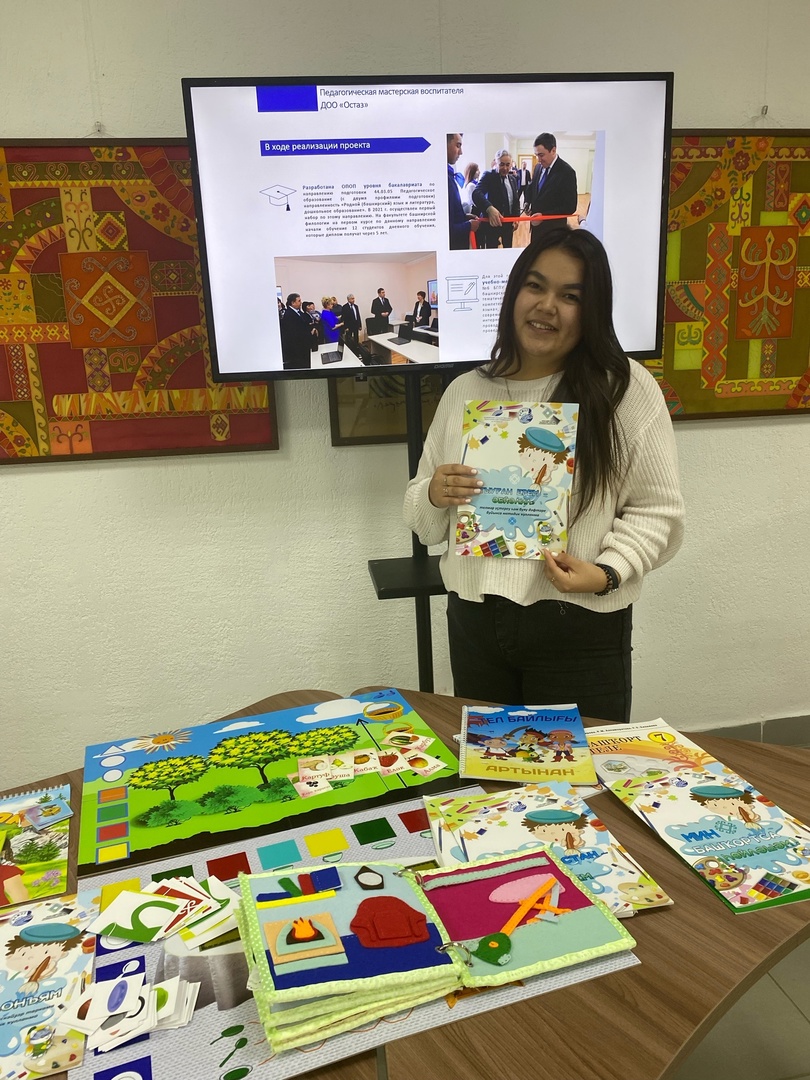 На выставке  были достойно представлены труды преподавателя кафедры башкирского языка и литературы доцента В.З.Тулумбаева и магистранта Г.А.Сабировой. Не меньший интерес вызвали у гостей учебники, учебно-методические пособия, словари, монографии, интерактивные пособия по обучению детей дошкольного возраста башкирскому языку, изданные и разработанные преподавателями кафедры факультета башкирской филологии.