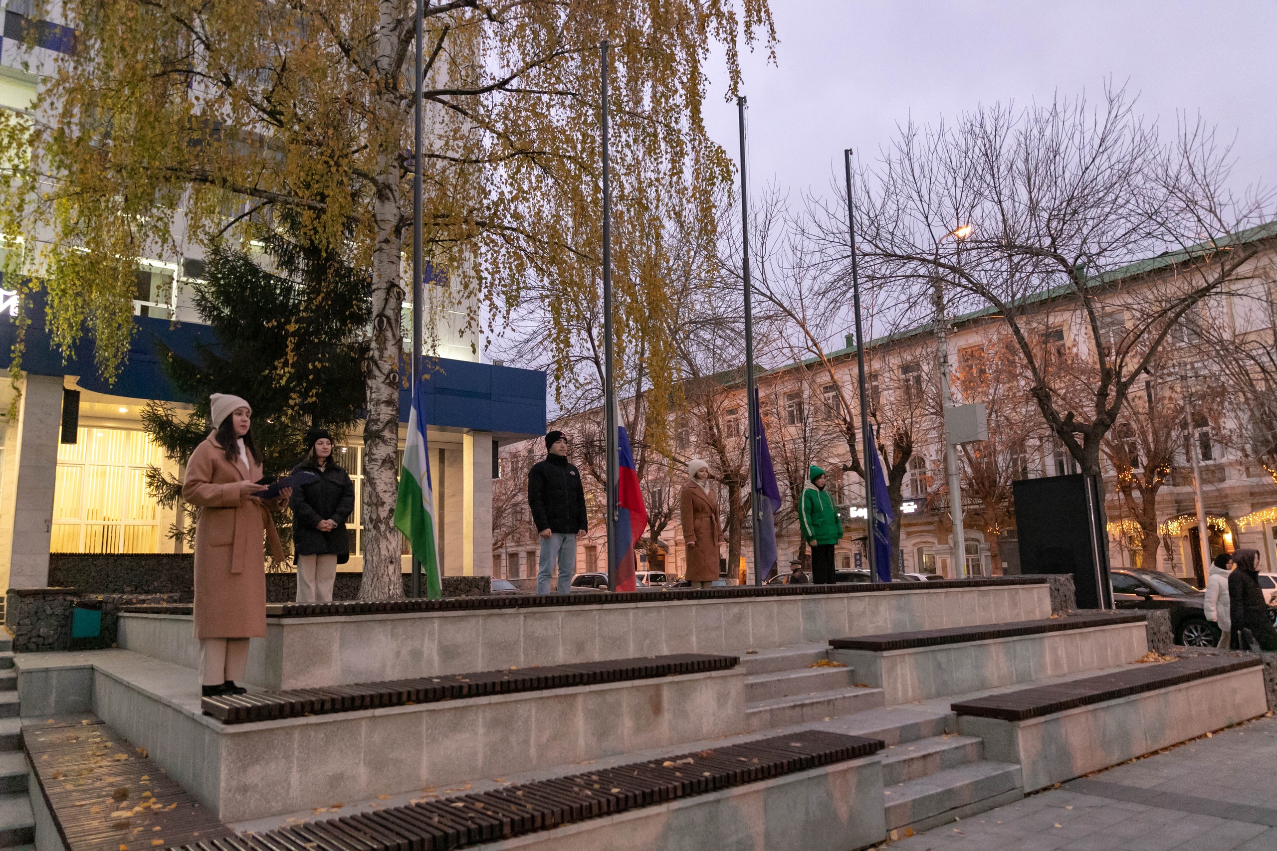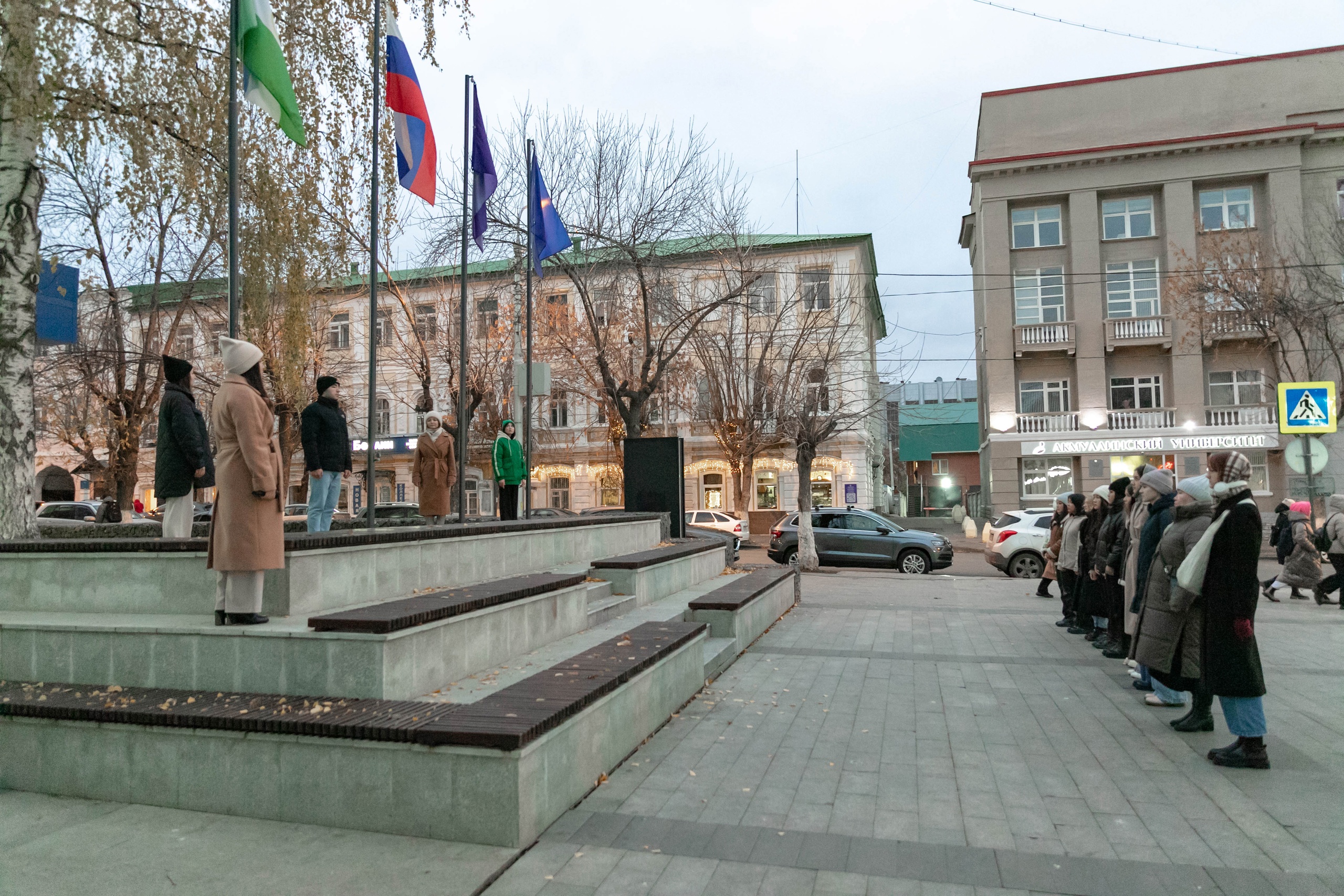 Под торжественную музыку над площадью перед вузом поднялись Государственный флаг Российской Федерации, флаги Республики Башкортостан, Министерства просвещения России и БГПУ имени М. Акмуллы.