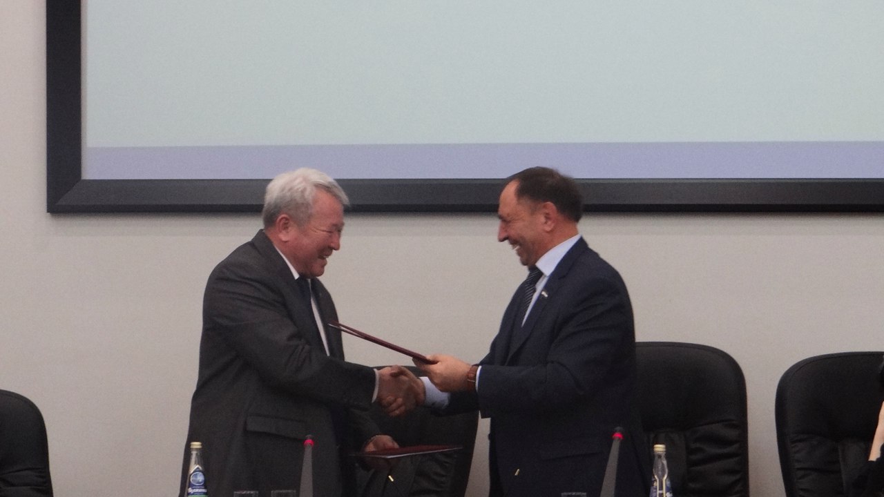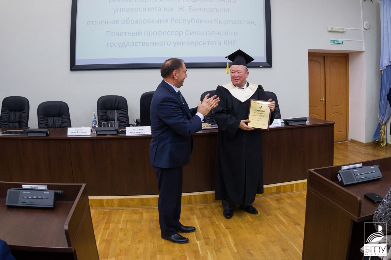 По окончании лекции Канат Жалилович Садыков и Раиль Мирваевич Асадуллин обменивались подарками и подписали договор о сотрудничестве между БГПУ им. М. Акмуллы и КНУ им.Ж. Баласагына.