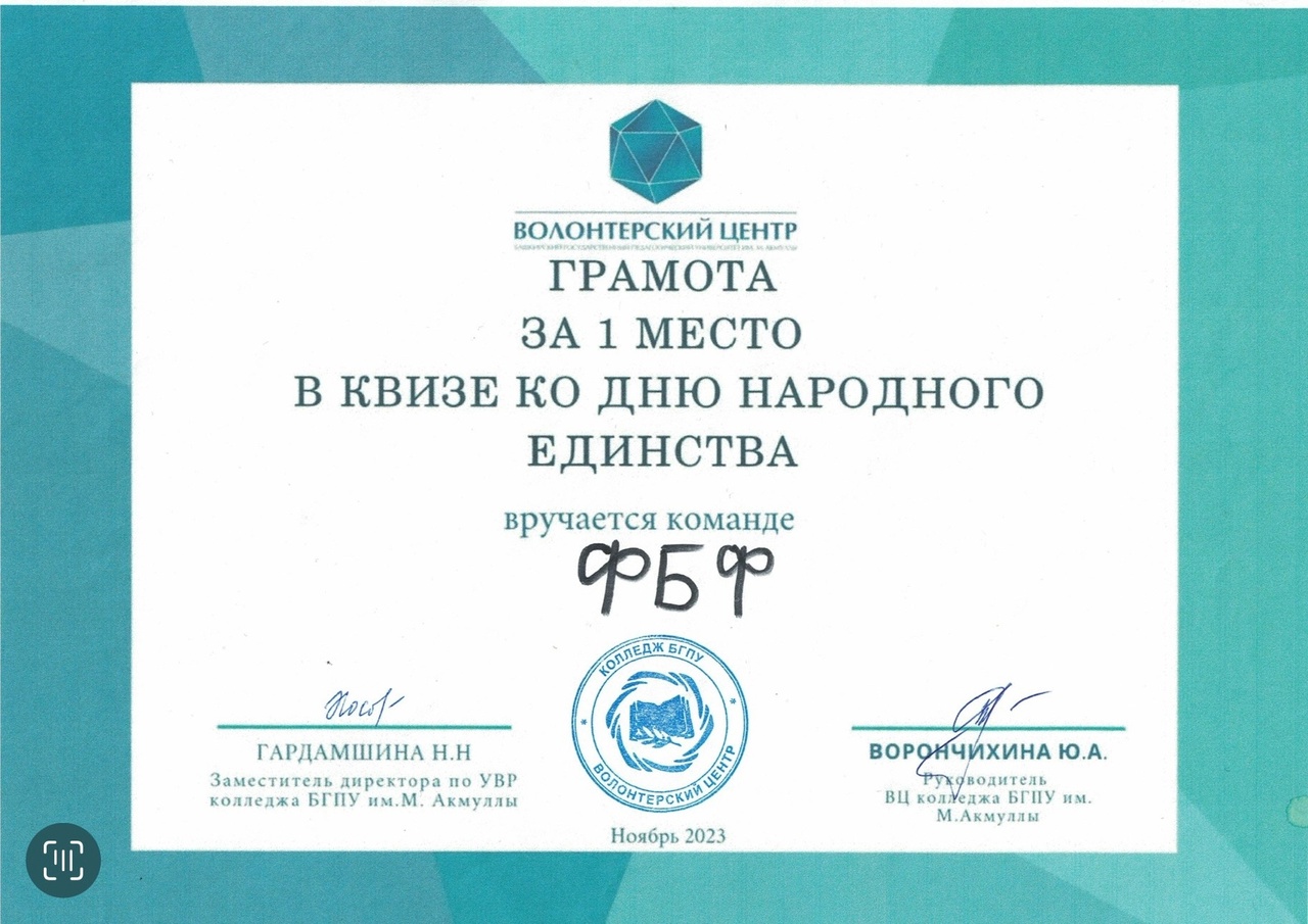 7 ноября в технопарке прошла квиз-игра, посвящённая «Дню народного единства», организатором которого выступил Волонтерский центр БГПУ им.М.Акмуллы.