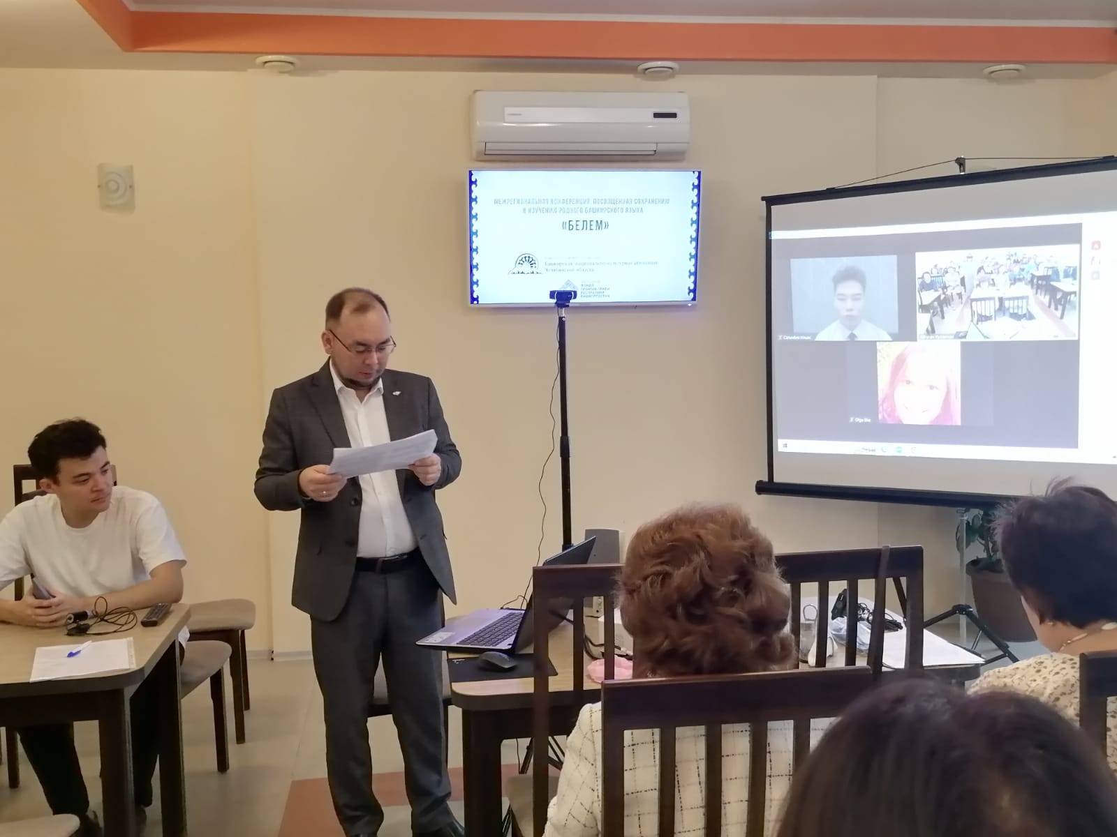 На второй день в режиме он-лайн состоялся  Международный круглый стол на тему «Изучение башкирского языка в регионах России и за рубежом», куда были приглашены коллеги из Варшавы (Польша),  Уфы, Северодвинска (Россия), Токио (Япония). На связи был Вячеслав Чернев,  полиглот, PhD из Варшавы. Он говорил о башкирском языке за рубежом, в частности,  в странах Европы.  Ильяс Сагынбек, учитель башкирского языка МAОУ школы №9 г. Уфы, аспирант ФБФ БГПУ им. М. Акмуллы, поделился опытом преподавания башкирского языка в средней школе. Будучи казахом, он разрабатывает методику обучения башкирского языка с привлечением материалов казахского языка. Идея оказалась плодотворной и вызывает интерес у учеников среднего звена. Ольга Щедричева, независимый исследователь из города  Северодвинска самостоятельно изучает башкирский язык и другие языки алтайской языковой семьи, что она и продемонстрировала слушателям: прочитала свои стихи на башкирском языке, поделилась идеей работы по переводу  книги М. Буракаевой на якутский язык, а также опытом того, как знание одного языка тюркской группы помогает освоению других родственных языков. Никого не оставило равнодушным видеобращение на башкирском языке Юто Хишияма, PhD, преподавателя Токийского университета иностранных языков. Юто Хишияма в 2023 году организовал в Японии курсы башкирского языка, где на него записалось 18 человек и все они с большим удовольствием занимаются постижением его тонкостей.