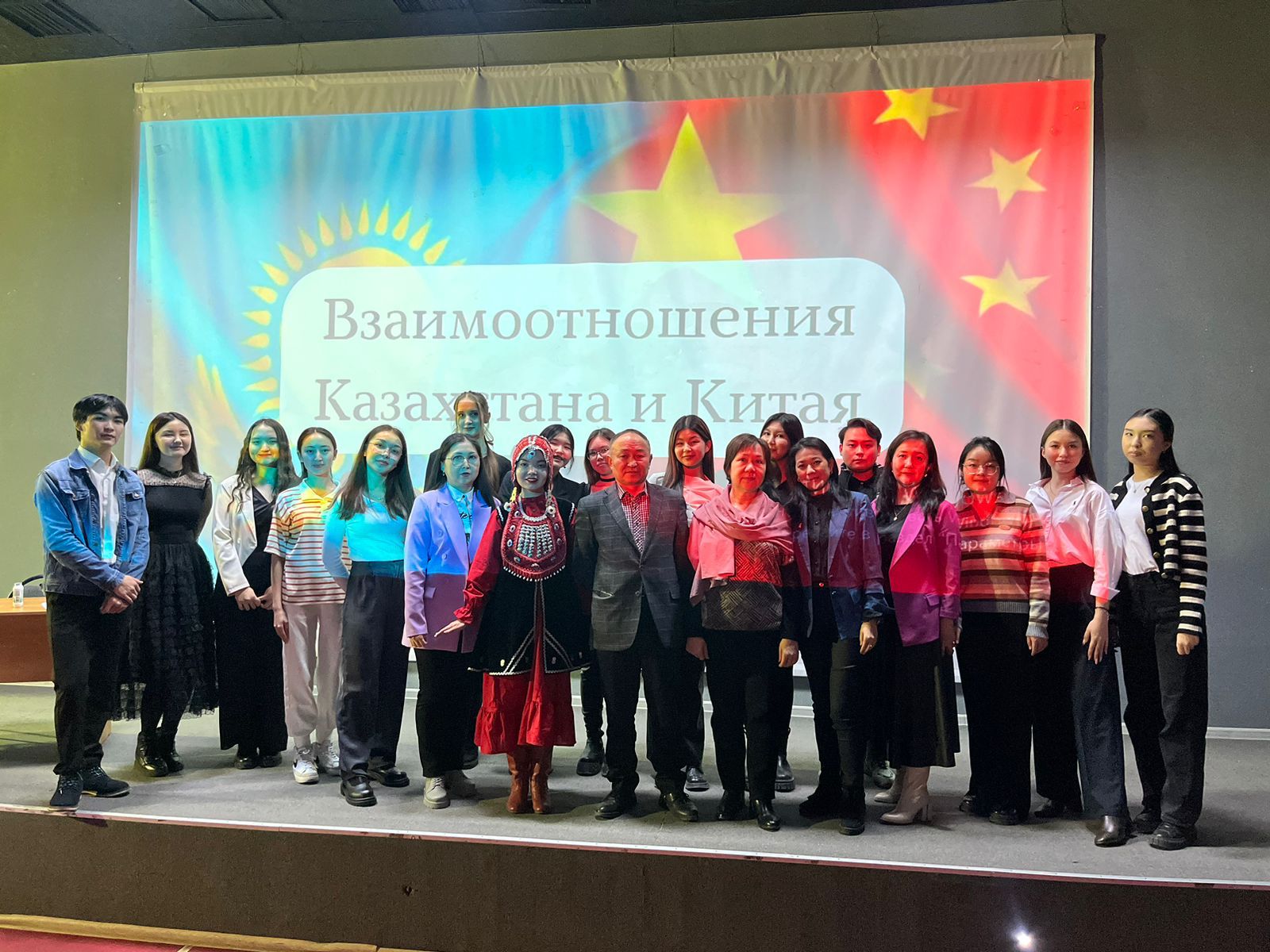14 ноября студенты кафедры китайской филологии организовали мероприятие в знак дружбы и поддержания теплых взаимоотношений между Казахстаном и Китаем, где были проведены различные китайские игры, а студенты 1 и 3 курсов спели свои любимые китайские песни. В конце мероприятия ведущие также добавили: «Казахстан дружит не только с Китаем, но и с другими странами. Например, к нам из России, из Республики Башкортостан приехала студентка по академической мобильности Мухаметдинова Эльмира, которая выступила с башкирским танцем в национальном костюме. К слову, этот костюм предоставила Жумабаева Гузалия, состоящая в этническом центре «Акбузат» при Ассамблеи Народов Казахстана города Астана. По её словам, в Астане проживают примерно 1100 башкир. В центре состоят свыше 30 человек-единомышленников. Вместе мы проводим различные мероприятия, такие как Йыйын, дни башкирской культуры, а также пишем башкирский диктант. В нашем сообществе не хватает молодёжи. Поэтому сейчас задача состоит в том, чтобы привить любовь к своей культуре, помочь найти свою идентичность».