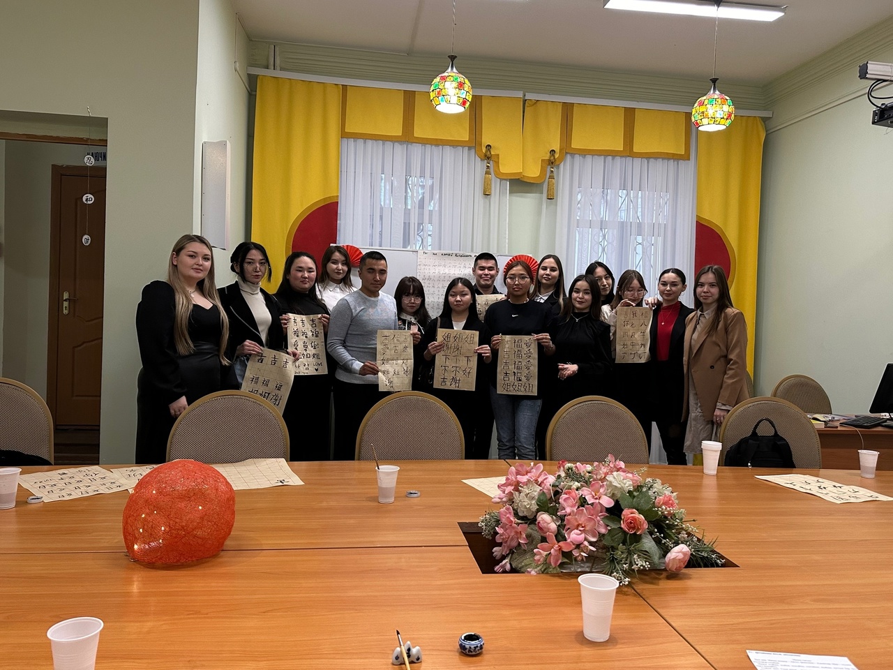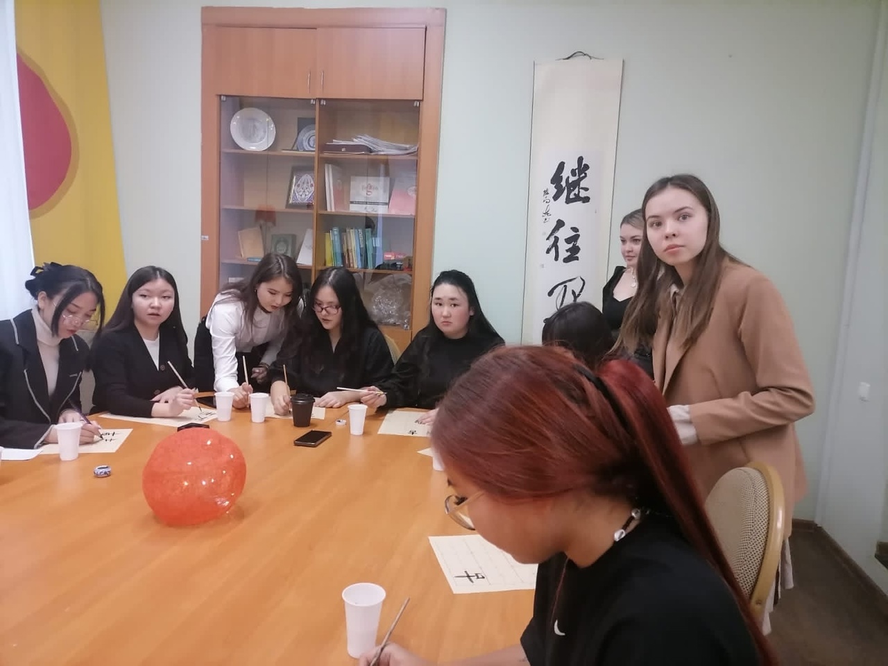 28 ноября студенты 3 курса китайской группы вместе со своим преподавателем Юлбарисовой Лией Фаниловной организовали для приехавших на стажировку студентов из Горно-Алтайского Государственного университета мастер-класс по китайской каллиграфии и живописи.