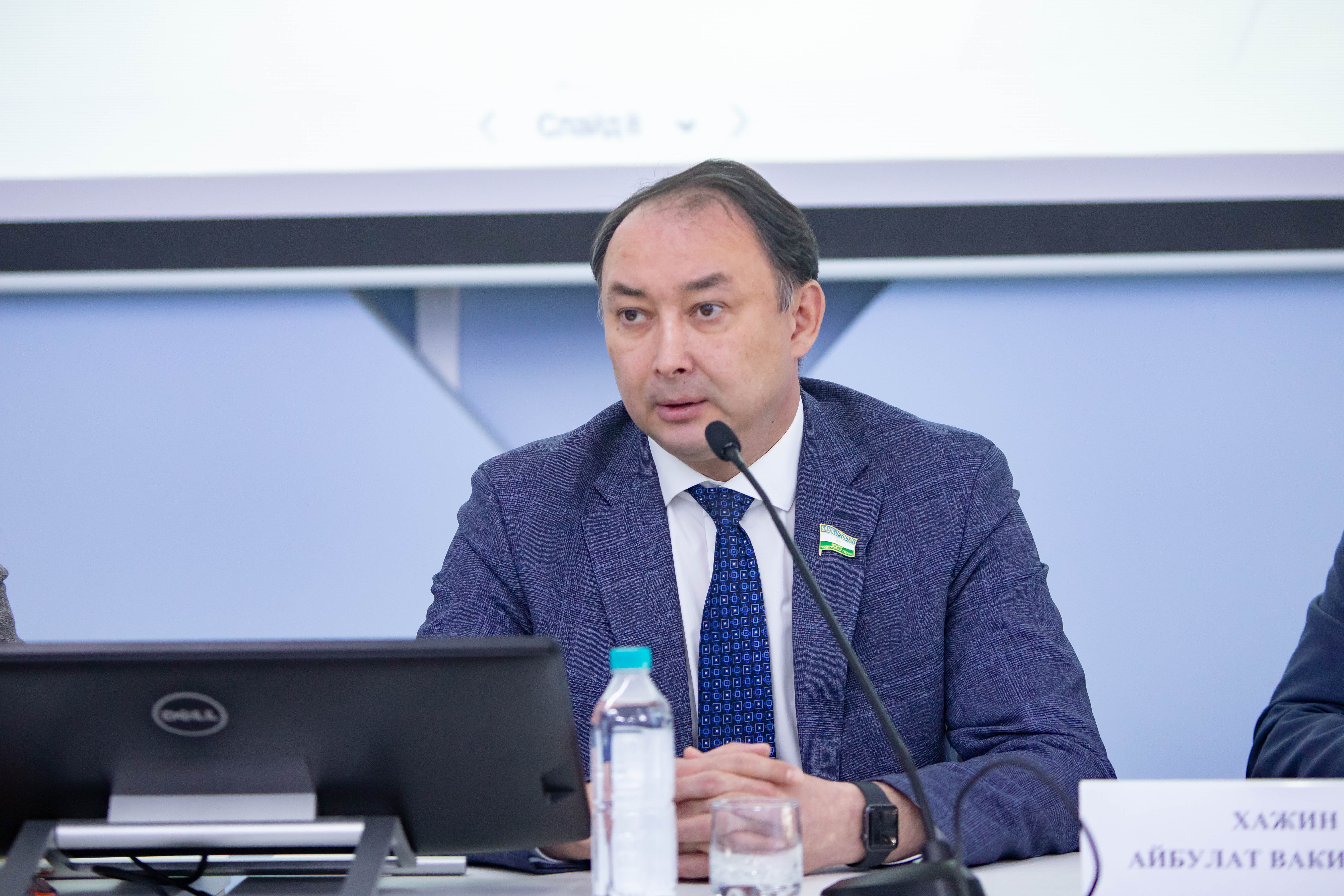 С приветствием обратился председатель Комитета  Государственного  Собрания  –  Курултая  РБ по науке, образованию, культуре, молодежной политике и спорту, выпускник Акмуллинского университета Айбулат Хажин. Он отметил, что в Башкирском педуниверситете за последние годы произошли большие изменения, коснувшиеся не только материально-технической базы, но и системы подготовки кадров, дополнительного профессионального образования.