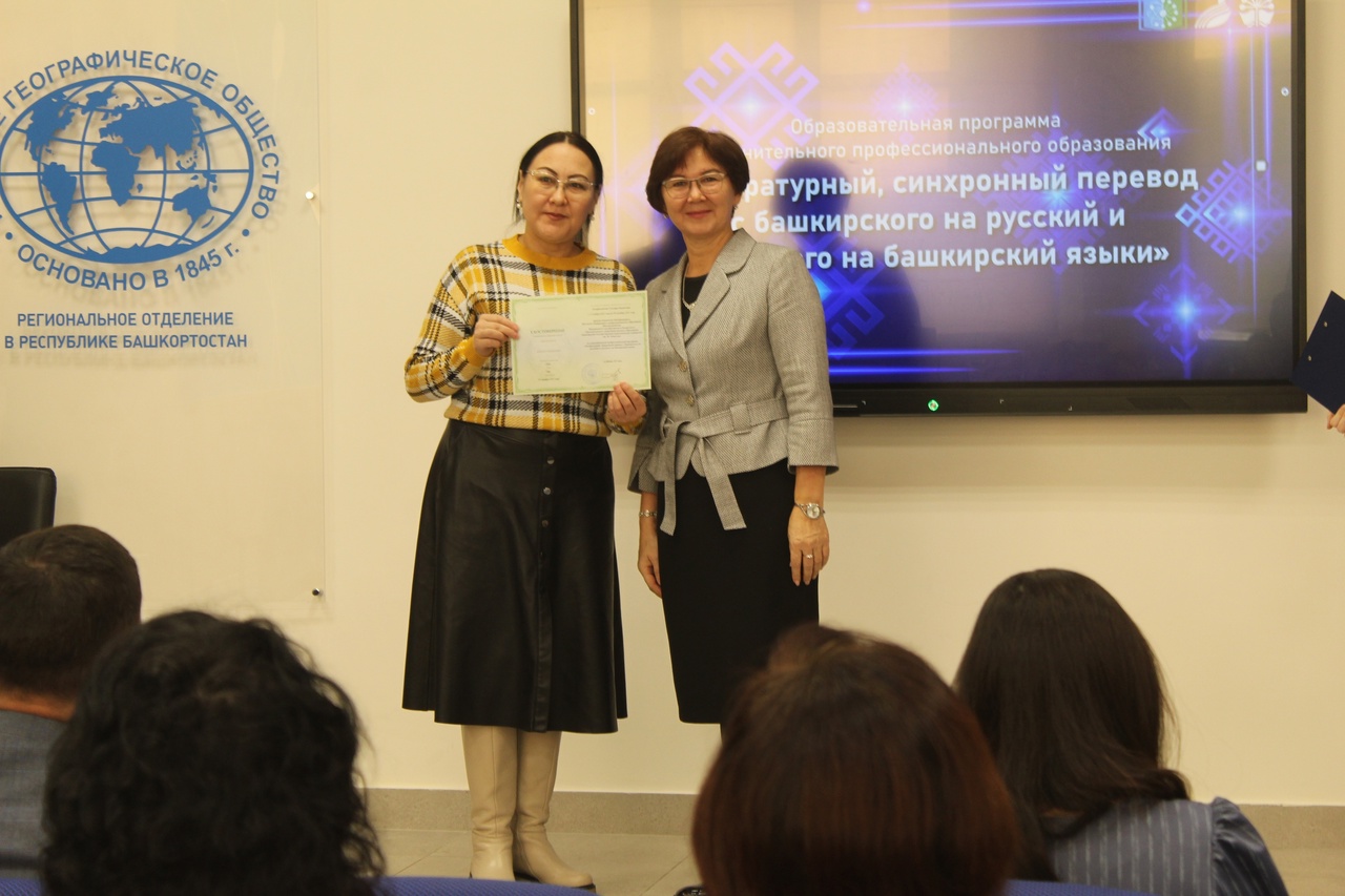 На церемонии вручения документов государственного образца об окончании курсов повышения квалификации декан факультета башкирской филологии Акмуллинского университета Ляйля Хусаинова подчеркнула  актуальность перевода в современном мире и поздравила слушателей курсов с успешным завершением.