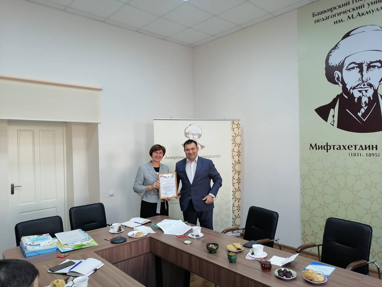 Шаймурат Азаматович подарил факультету сборник исследовательских работ обучающихся НПК «Рахимовские чтения», ежегодно проводимой совместно с Акмуллинским университетом.