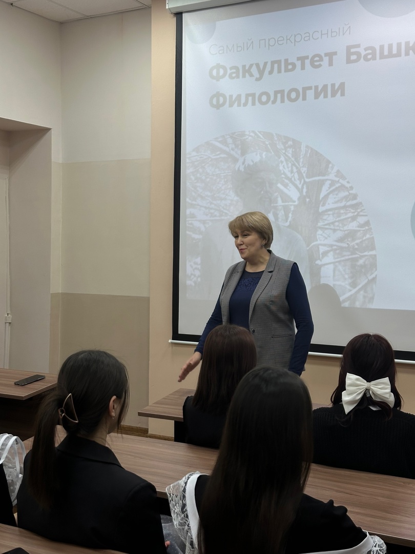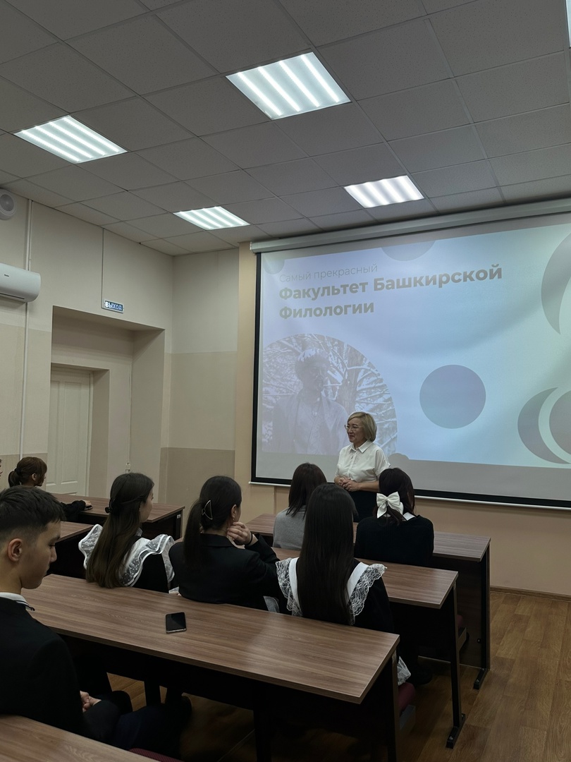 21 декабря факультет башкирской филологии в рамках деятельности психолого-педагогического класса организовал профориентационную встречу для школьников 11-го класса Башкирской республиканской гимназии-интерната № 1 имени Рами Гарипова с целью их знакомства с факультетом и его работой.
