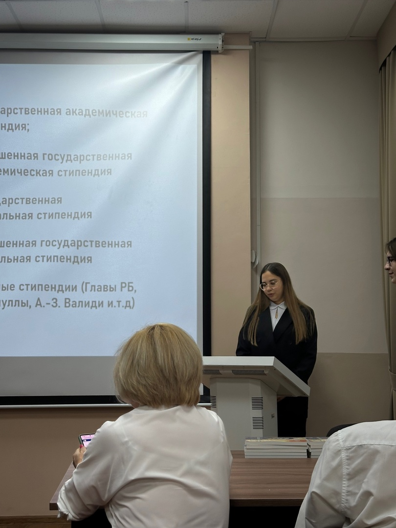 Впоследствии председатель студактива Дюсметова Лилия и руководитель сектора профориентации и карьерного роста Салимов Динислам познакомили будущих выпускников-студентов с направлениями работы (научными, творческими, спортивными и т.д.), перспективами развития как внутри, так и вне нашего факультета, материальной стипендиальной поддержкой университета, профилями подготовки.