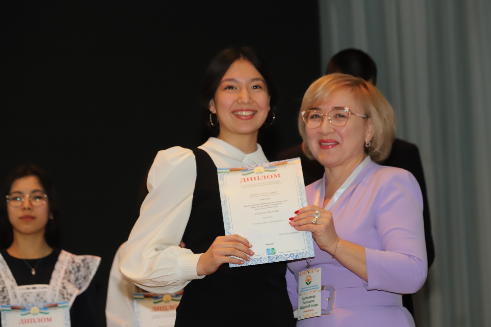 Декан факультета башкирской филологии, профессор Ляйля Хусаинова вручила победителям в номинации «Родной язык – богатство нации» специальные призы БГПУ имени М.Акмуллы.