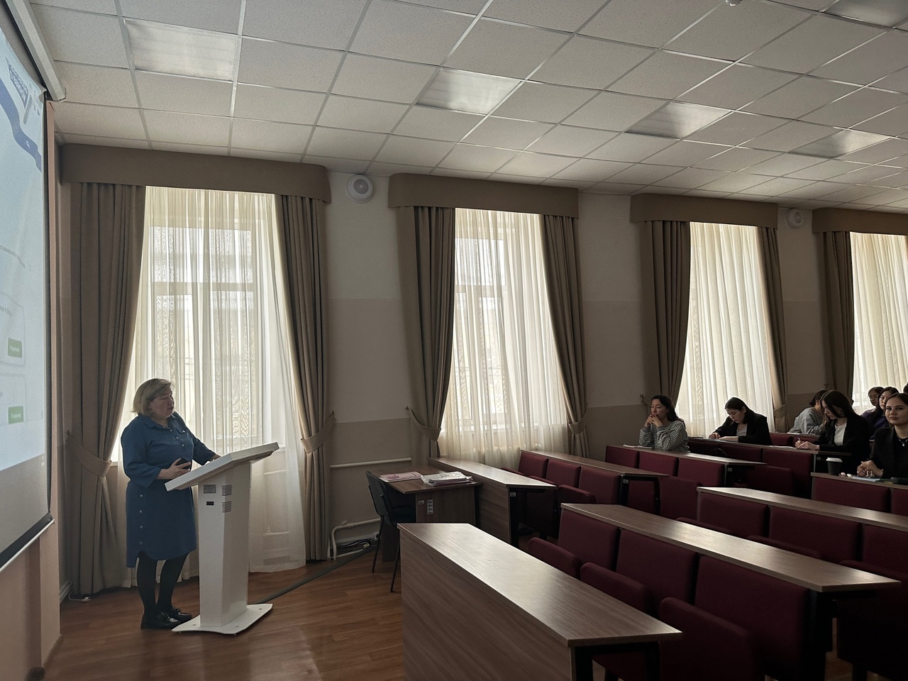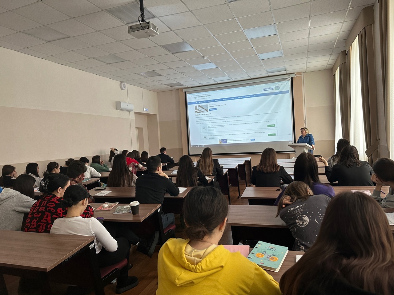 Заместитель декана по воспитательной работе и молодежной политике, Галина Галима Галимьяновна в формате беседы познакомила студентов 3 курсов, будущих педагогов, с профориентационным курсом, информационными, методическими материалами и с тонкостями проведения профориентации со школьниками, а также предложила студентам использовать данные материалы курса во время прохождения своей будущей практики.