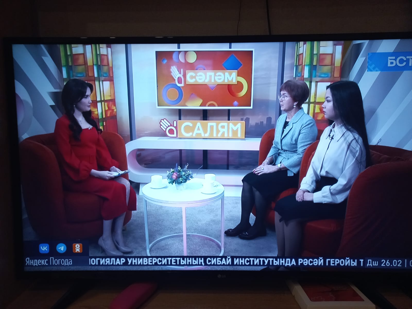 26 февраля декан факультета башкирской филологии, доктор филологических наук Хусаинова Ляйля Мидхатовна и студентка 2 курса группы ПОБЯ_КЯ_21-22 Мухаметдинова Эльмира были приглашены на прямой эфир утренней программы БСТ «Салям». В ходе эфира Эльмира поделилась своими впечатлениями о стажировке в ЕНУ им. Л. Гумилева (г.Астана, Казахстан) по программе академической мобильности «Welcome to ENU», которая прошла с сентября по декабрь 2023 года. Она  рассказала про особенности программы по изучению китайского языка на базе Евразийского Национального Университета имени Л.Н.Гумилева в городе Астана, а также о выступлении с башкирским танцем на студенческом концерте, организованном стажерами разных стран.