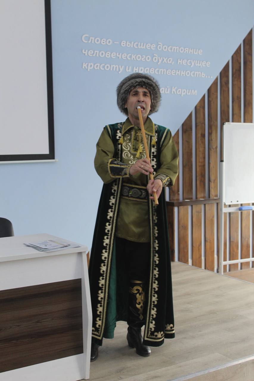 Мероприятие прошло на позитивном настрое под мелодичное звучание курая Юнира Сагинбаева и студента 4 курса Хасанова Айгиза, трогательным выступлением студента 2 курса Рахмангулова Камиля. Волонтеры Акмуллинского университета встречали и провожали почетных гостей и участников диктанта.