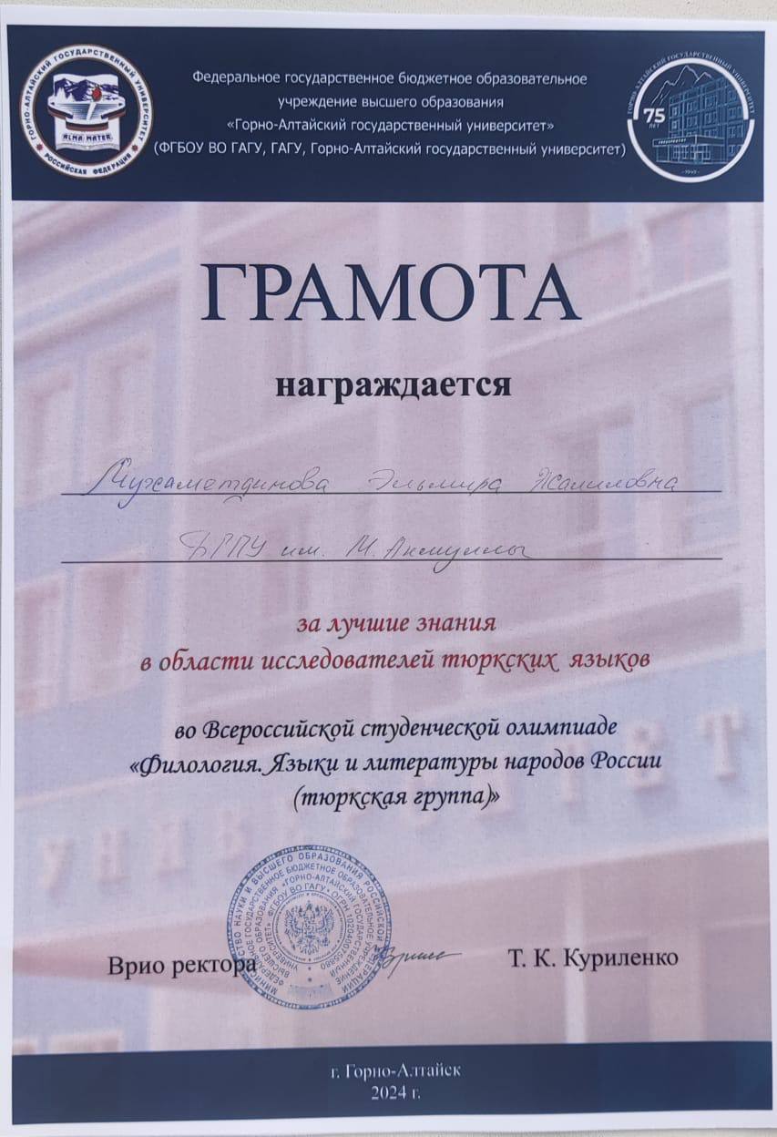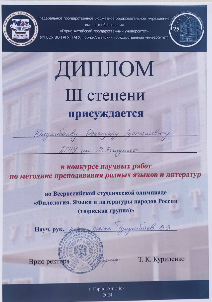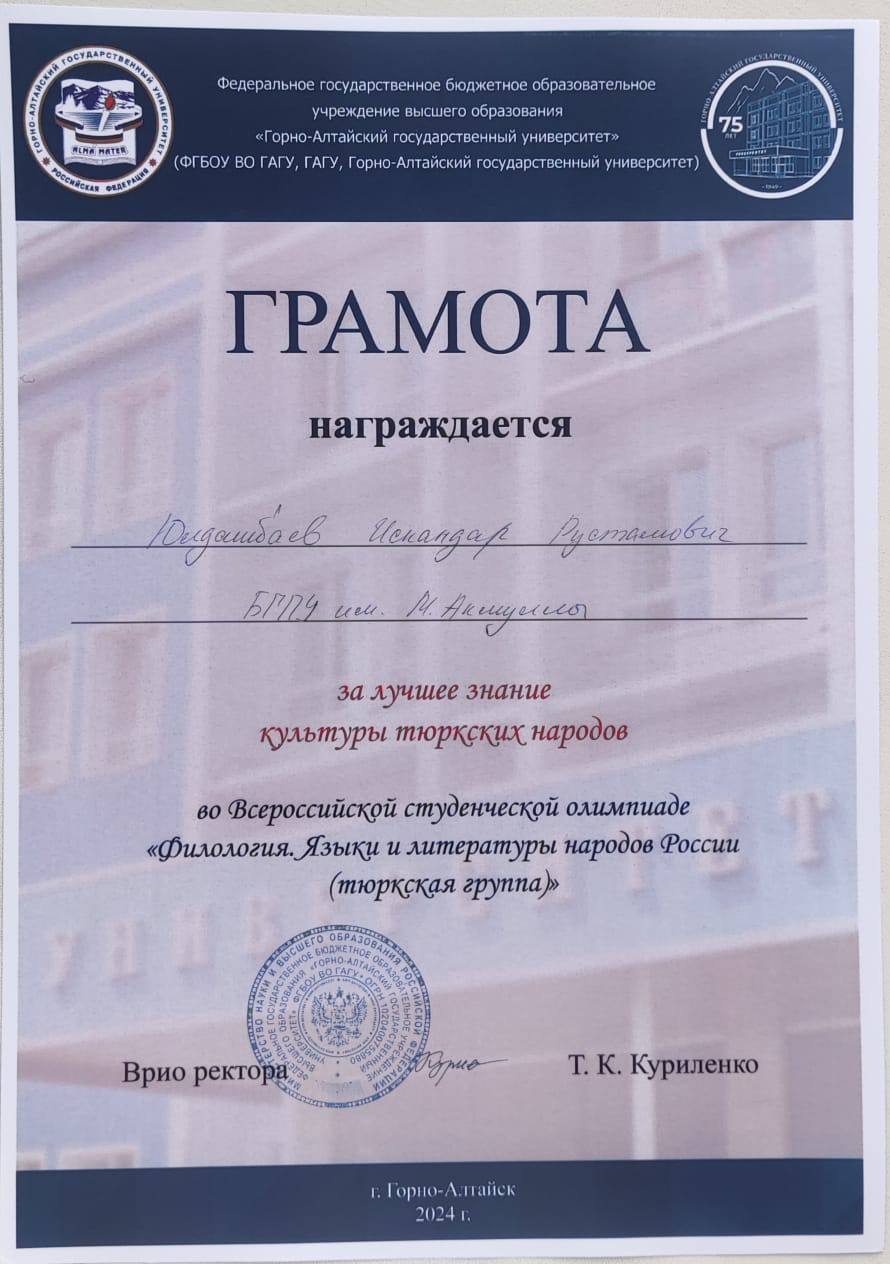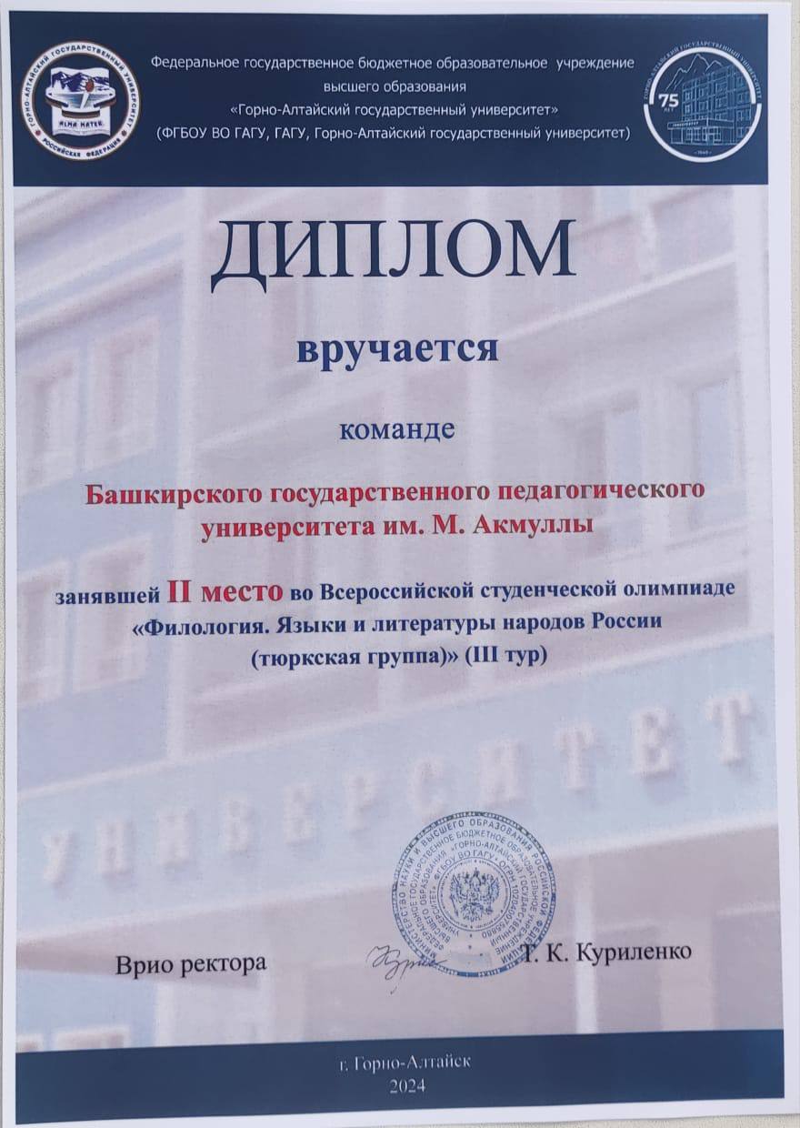 Олимпиада дала возможность студентам со всей России продемонстрировать владение языками тюркской группы. Команда факультета башкирской филологии выражает благодарность руководству Акмуллинского университета и Горно-Алтайского государственного университета за предоставленную возможность.