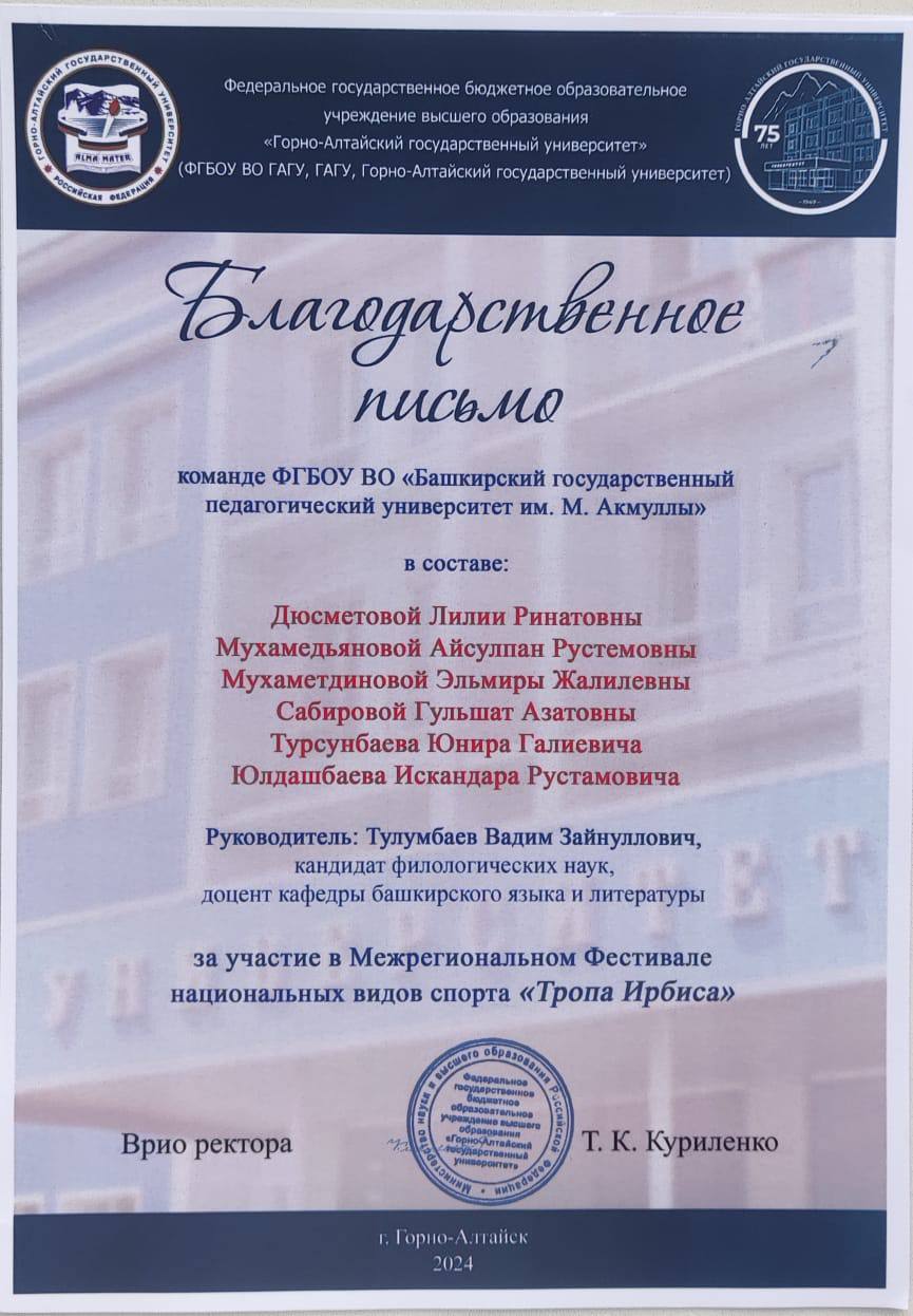 Также команда факультета башкирской филологии БГПУ имени М. Акмуллы была награждена грамотами в номинациях: