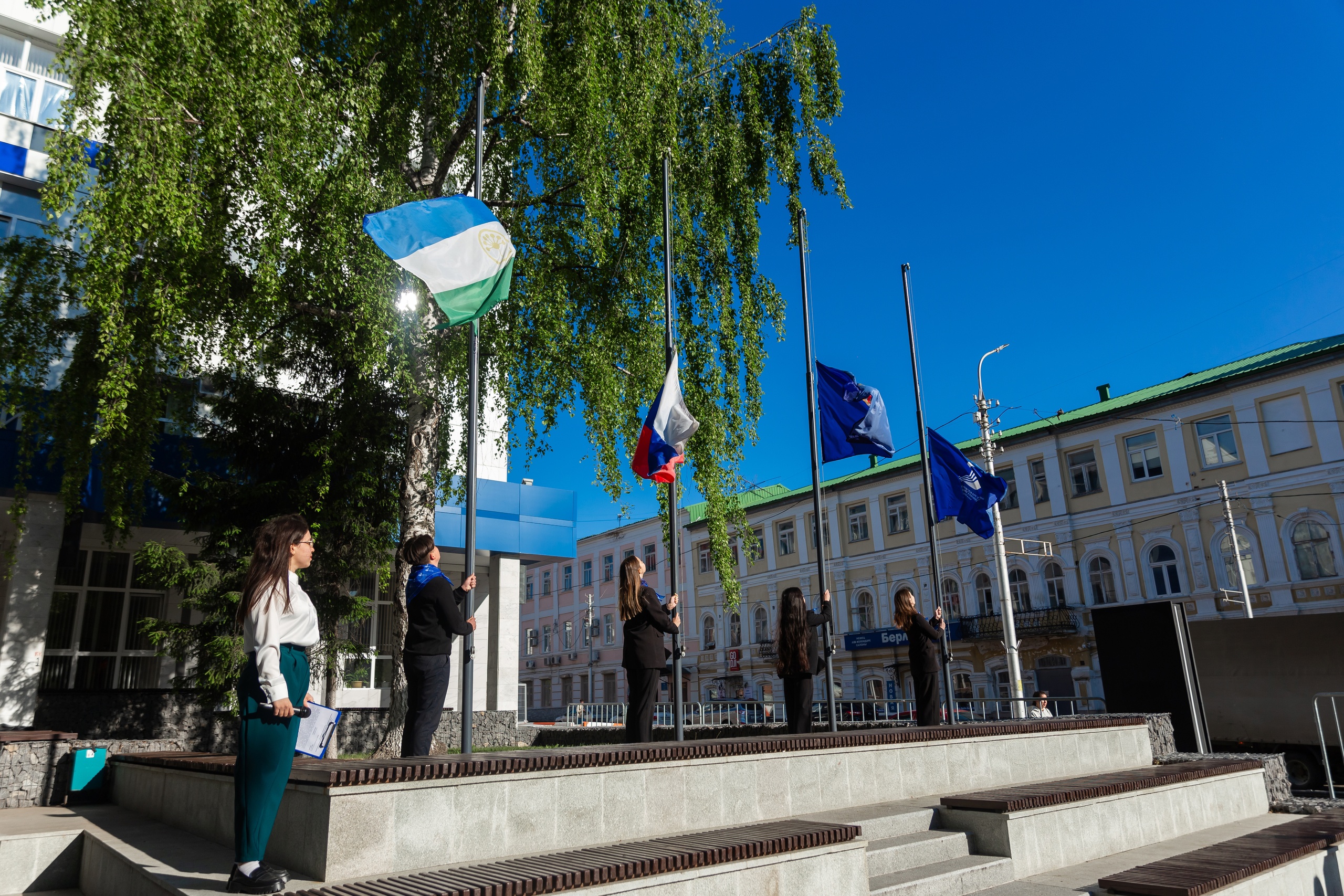 Студенты ФБФ подняли флаги перед Акмуллинским университетом