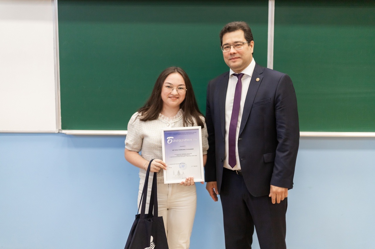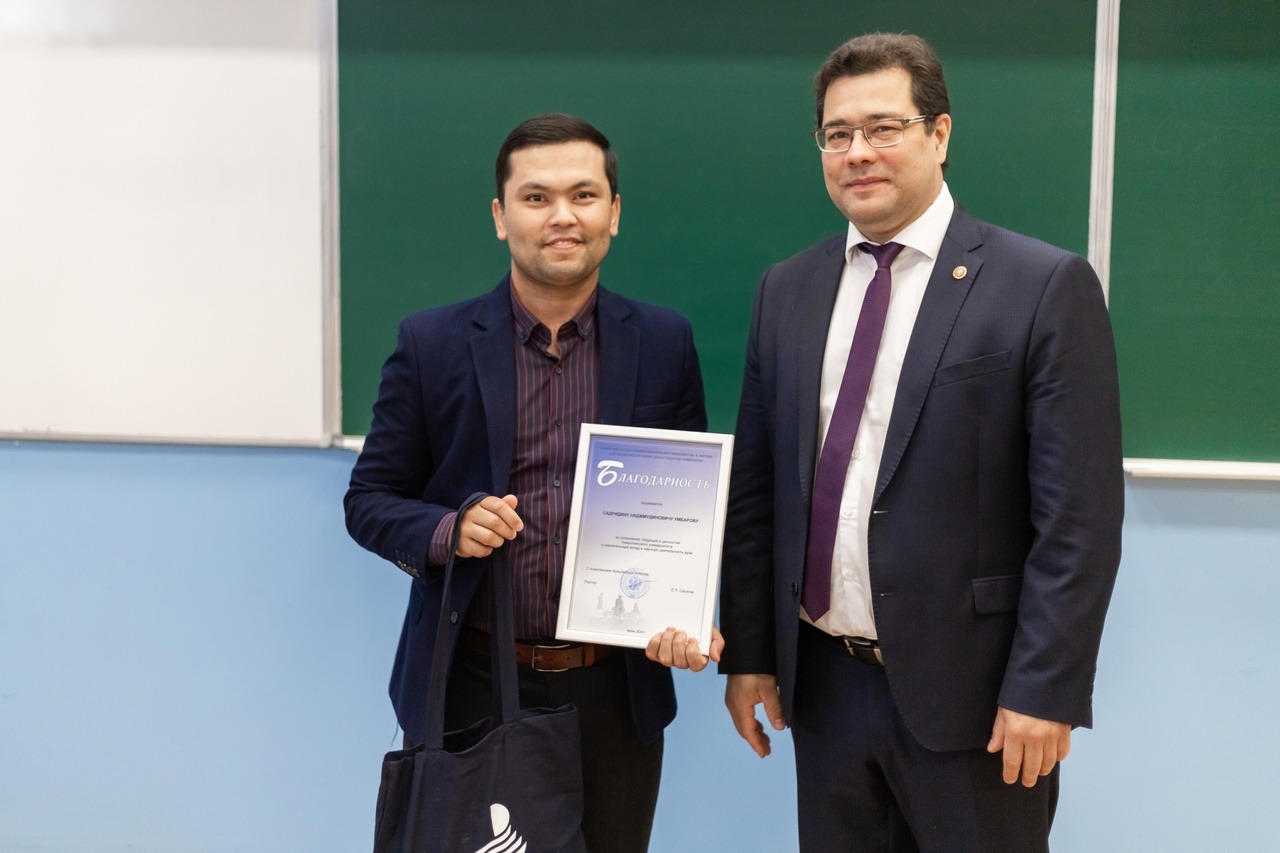 За значительные достижения в научной деятельности вуза благодарственным письмом награжден магистрант 2 курса Садридин Умбаров.
