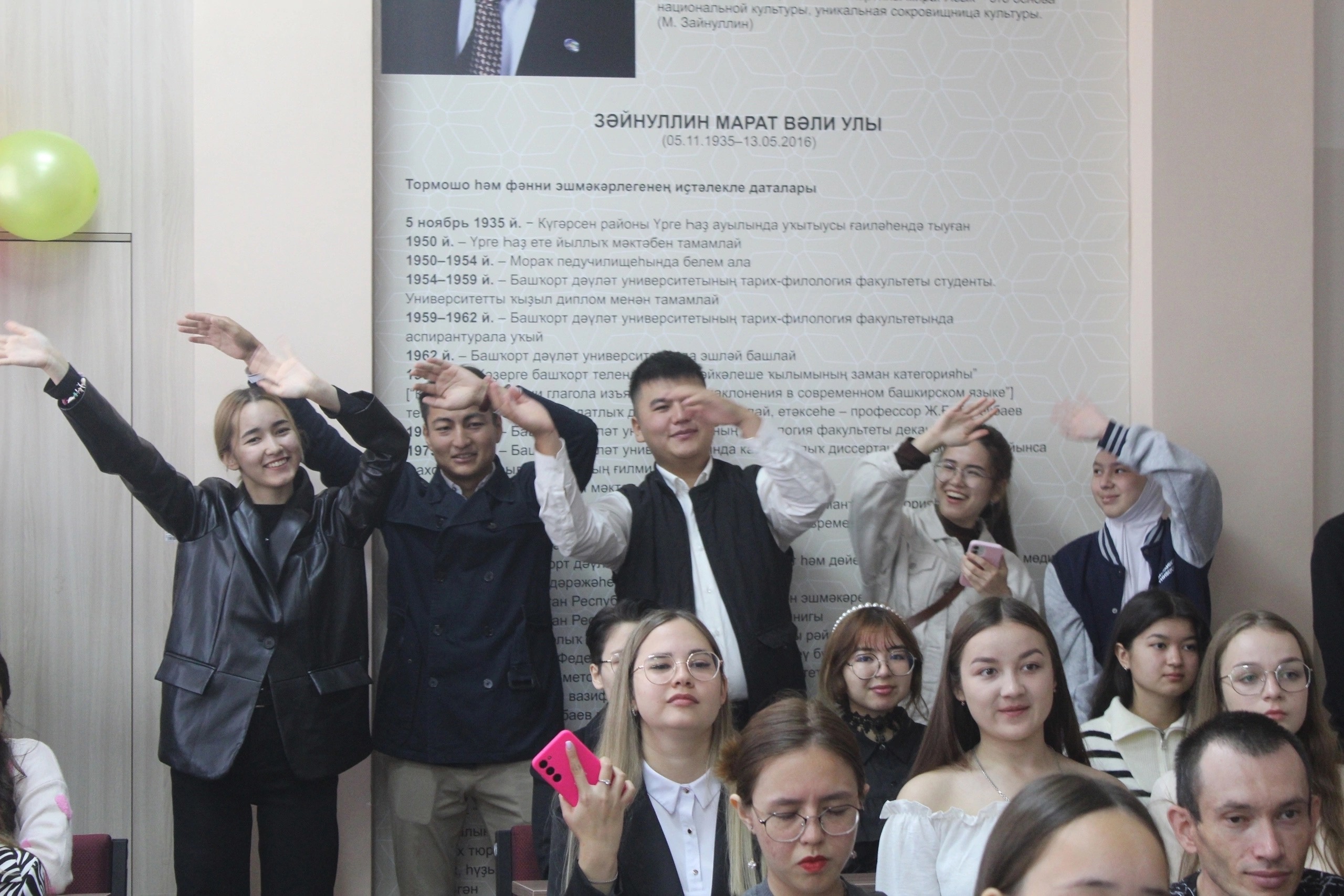 Завершилось мероприятия по традиции всеобщим исполнением гимна факультета башкирской филологии, одним из авторов которого является Ильяс Киньягулов.