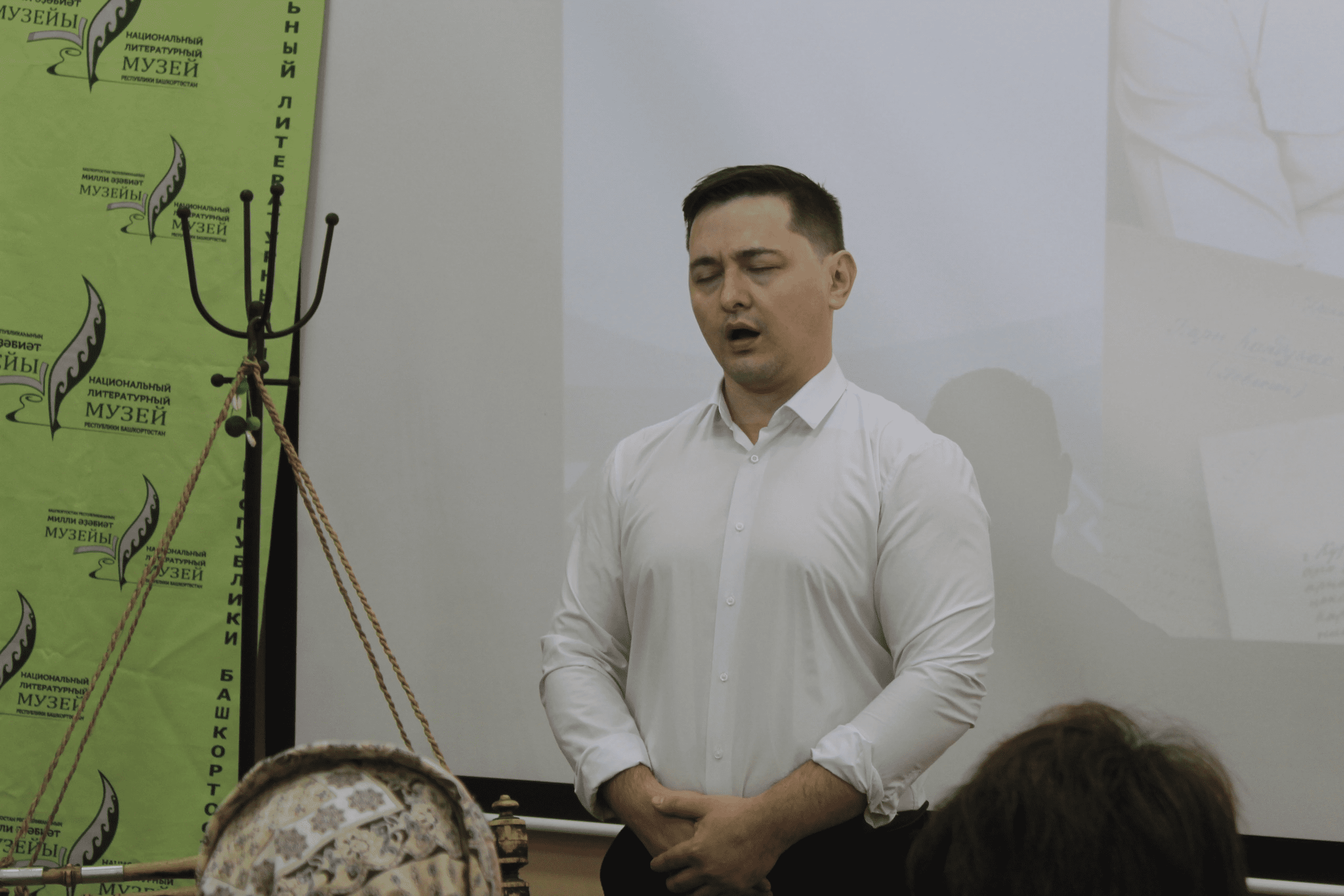 Началась встреча с любимой песни Булякова «Абдрахман» в исполнении артиста хора Башкирского Государственного театра оперы и балета Айбулатом Кунакбаевым. Его баритон в миг погрузил всех вокруг в вихрь страстей и эмоций.