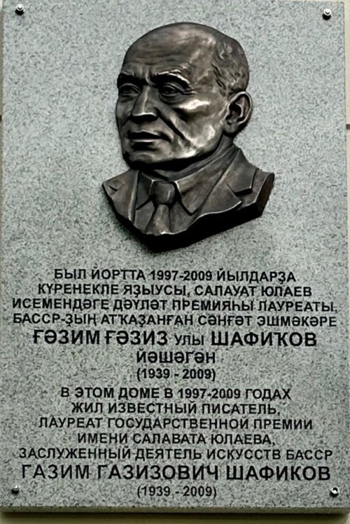20 сентября состоялось торжественное открытие мемориальной доски поэту, прозаику, драматургу, лауреату Государственной премии имени Салавата Юлаева Газиму Шафикову с надписью: «В этом доме в 1997 -2009 годах жил известный писатель, лауреат государственной премии имени Салавата Юлаева, заслуженный деятель искусств БАССР Газим Газизович Шафиков». Мероприятие приурочено к 85-летию со дня рождения выдающегося сына башкирского народа.
