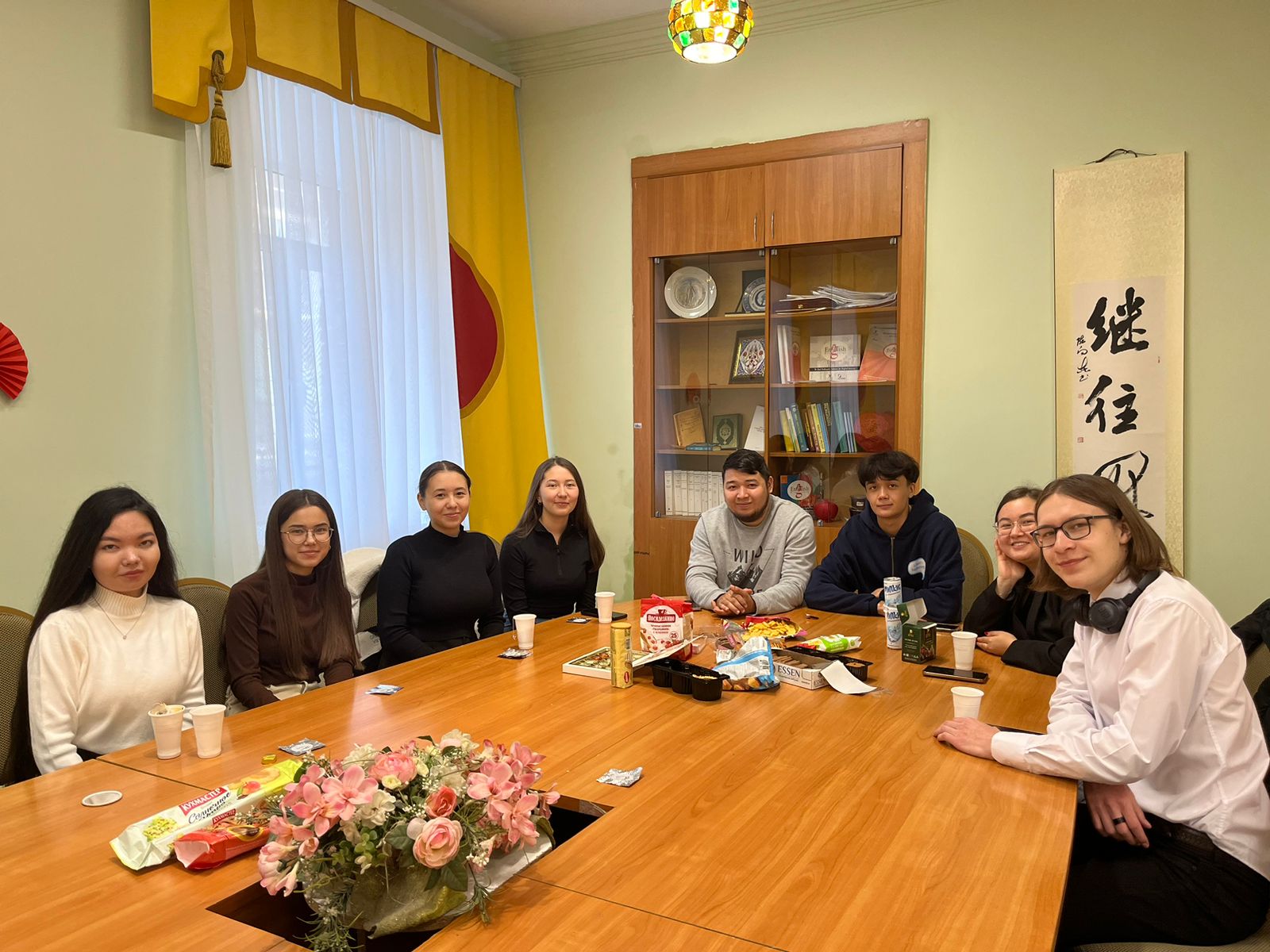 Студенты 3 курса китайского направления под руководством преподавателя кафедры тюркской и восточной филологии Д.Ю. Юлдашевой подготовили тематическое мероприятие, где за чашкой чая, в неформальной обстановке обсудили историю становления Китайской Народной Республики, рассказали об известных политических деятелях тех времен.