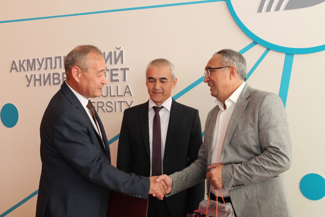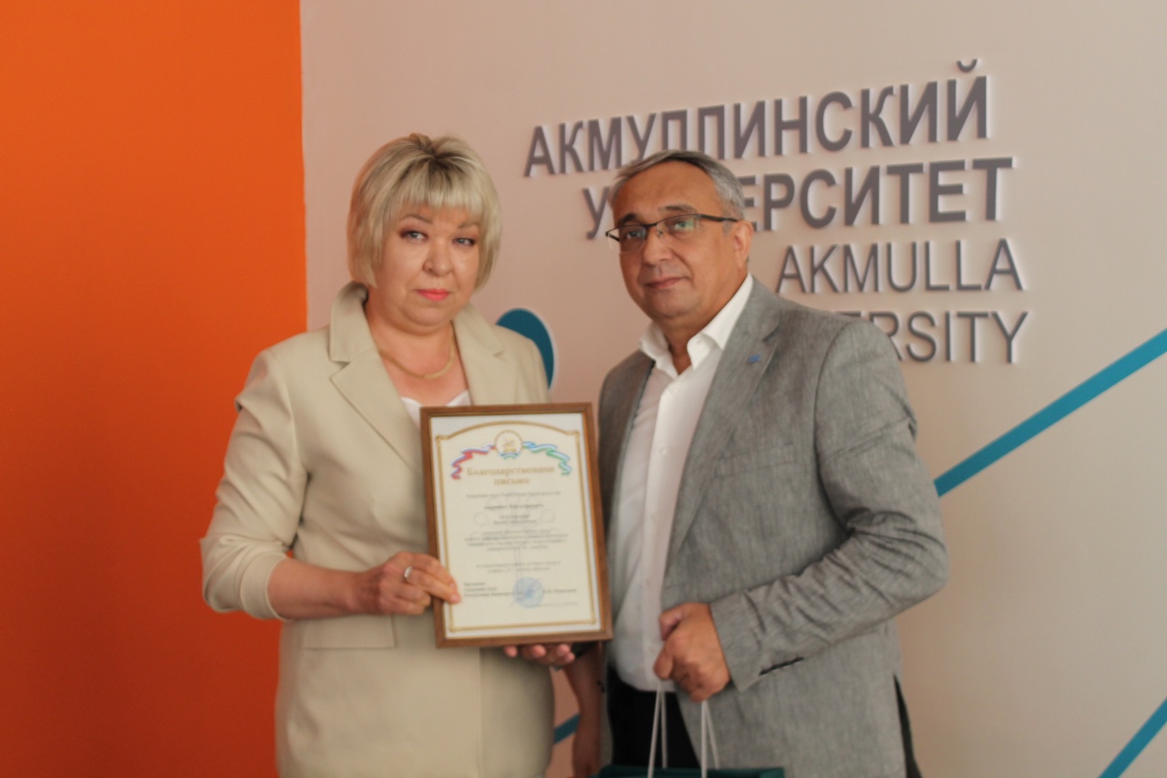 От имени коллектива БГПУ им. М. Акмуллы и ректора Акмуллинского университета прочитал передал поздравления юбиляру проректор по молодежной политике и международным связям Юлбаев Радик Зинатович.