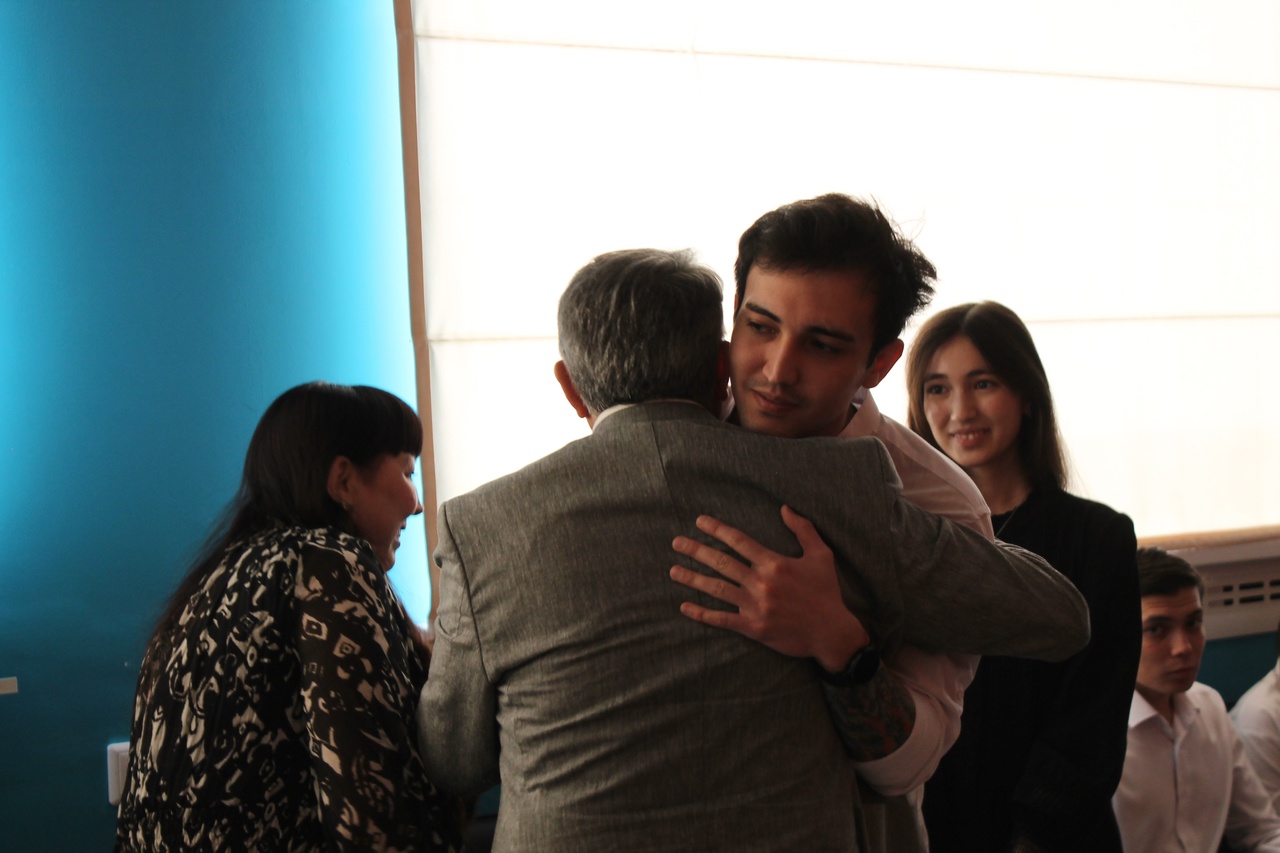 И, конечно же, своего любимого педагога поздравили выпускники (директор департамента по воспитательной работе и молодежной политике в Акмуллинском университете Кагарманов Ильдус Фанилевич, дректор и преподаватель Республиканской полилингвальной многопрофильной гимназии № 2 "СМАРТ" Мухамадиев Ильнур Ильгизович и Сагынбек Ильяс Жаркымбекулы, учитель башкирского языка и литературы МБОУ башкирский лицей им. М. Бурангулова Муллагалина Миляуша Халиловна) и нынешние студенты факультета башкирской филологии, отметившие большую роль его личности в их становлении не только как учителей, но и специалистов-языковедов. Студенты подготовили и подарили концертные номера участникам круглого стола.