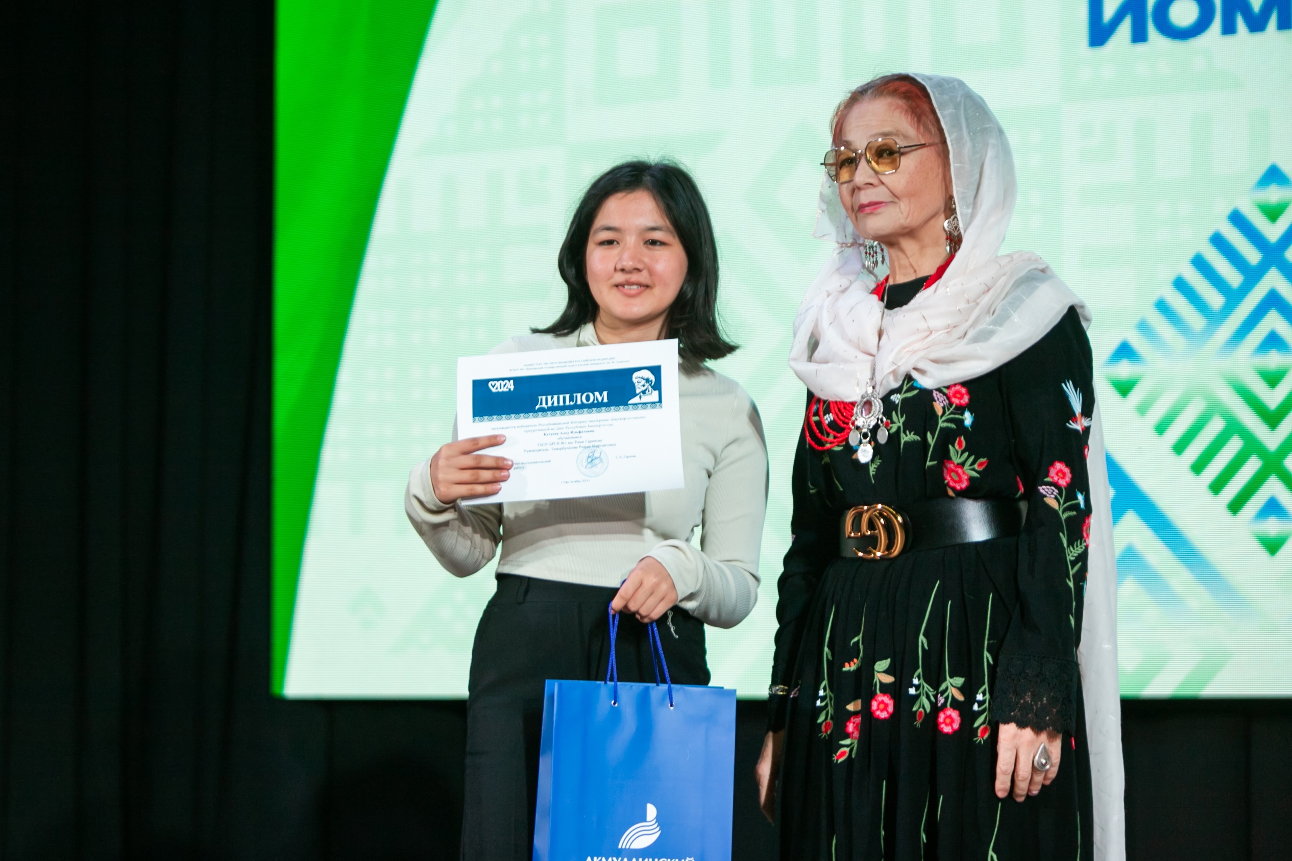Награждение сопровождалось праздничным концертом, подготовленным студентами факультета башкирской филологии. На одной сцене с заслуженными артистами Республики Башкортостан выступили активисты факультета, а также победители фестиваля «Студенческая осень – 2024».
