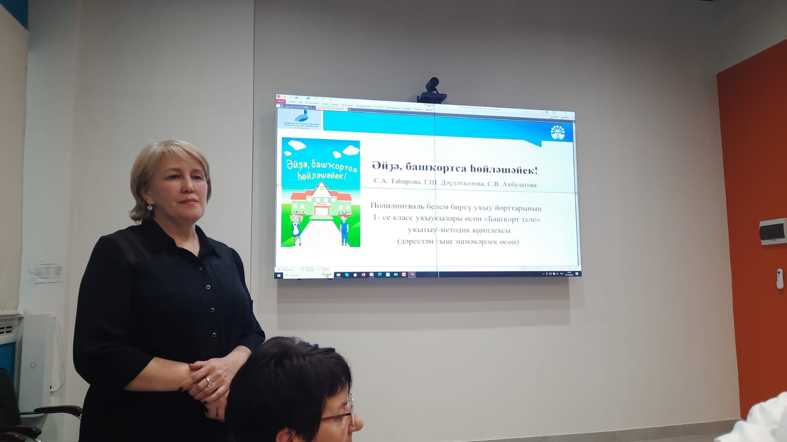 Заведующий кафедрой башкирского языка и литературы факультета башкирской филологии Башкирского государственного педагогического университета имени Мифтахетдина Акмуллы Салима Тагирова представила УМК для 1 класса полилингвальных школ. УМК включает в себя учебники, рабочие тетради, методические рекомендации для учителей и родителей.