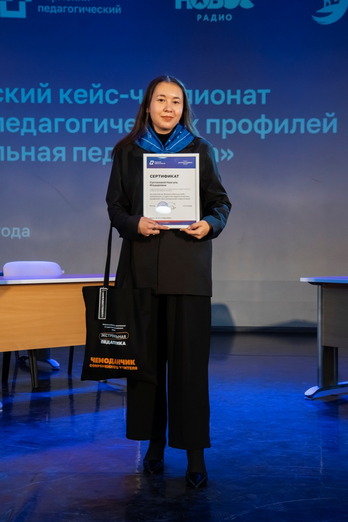 Поздравляем Назгуль и ее наставника Т.М. Аминова – профессора кафедры педагогики - с достойным педагогическим дебютом на всероссийском уровне!