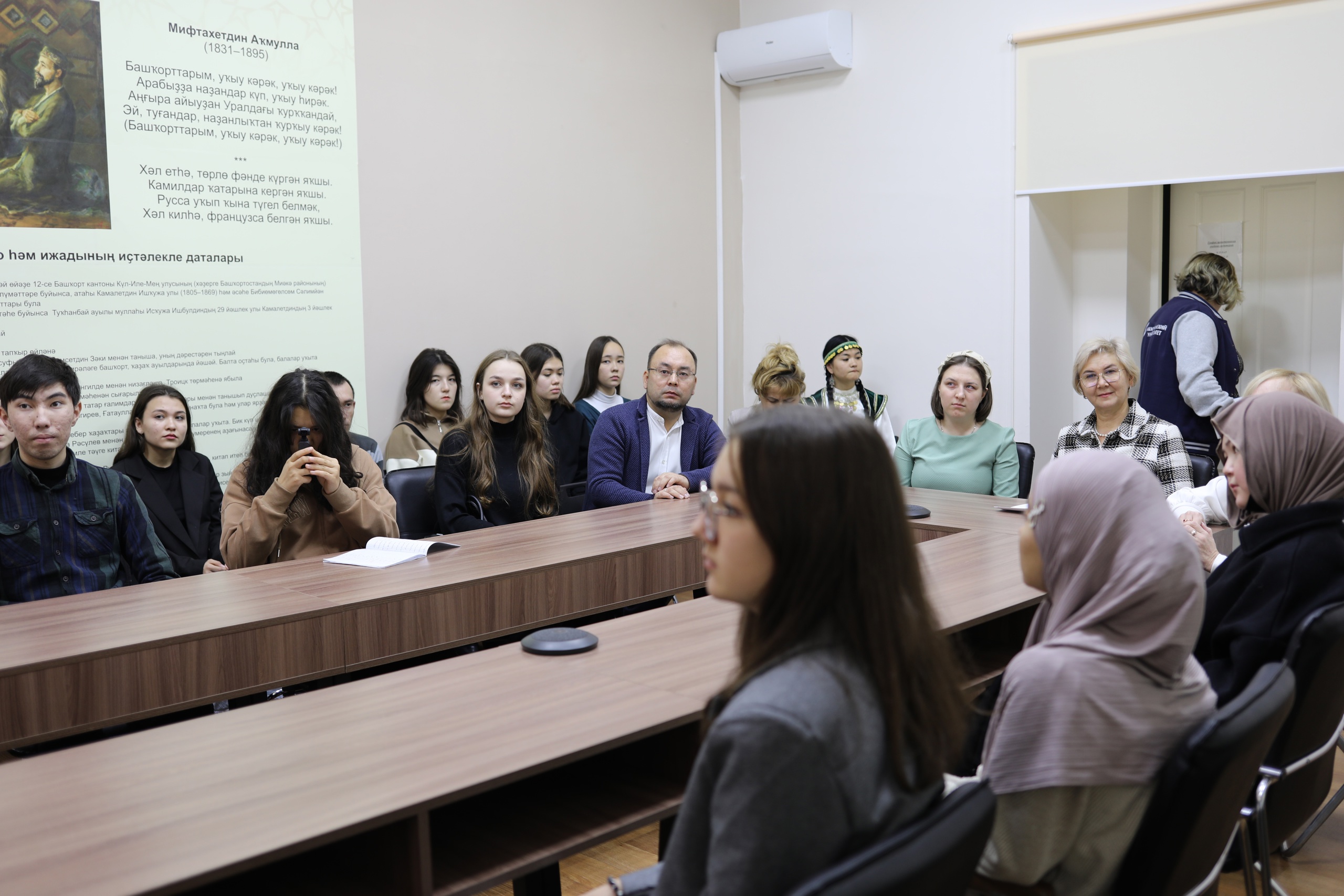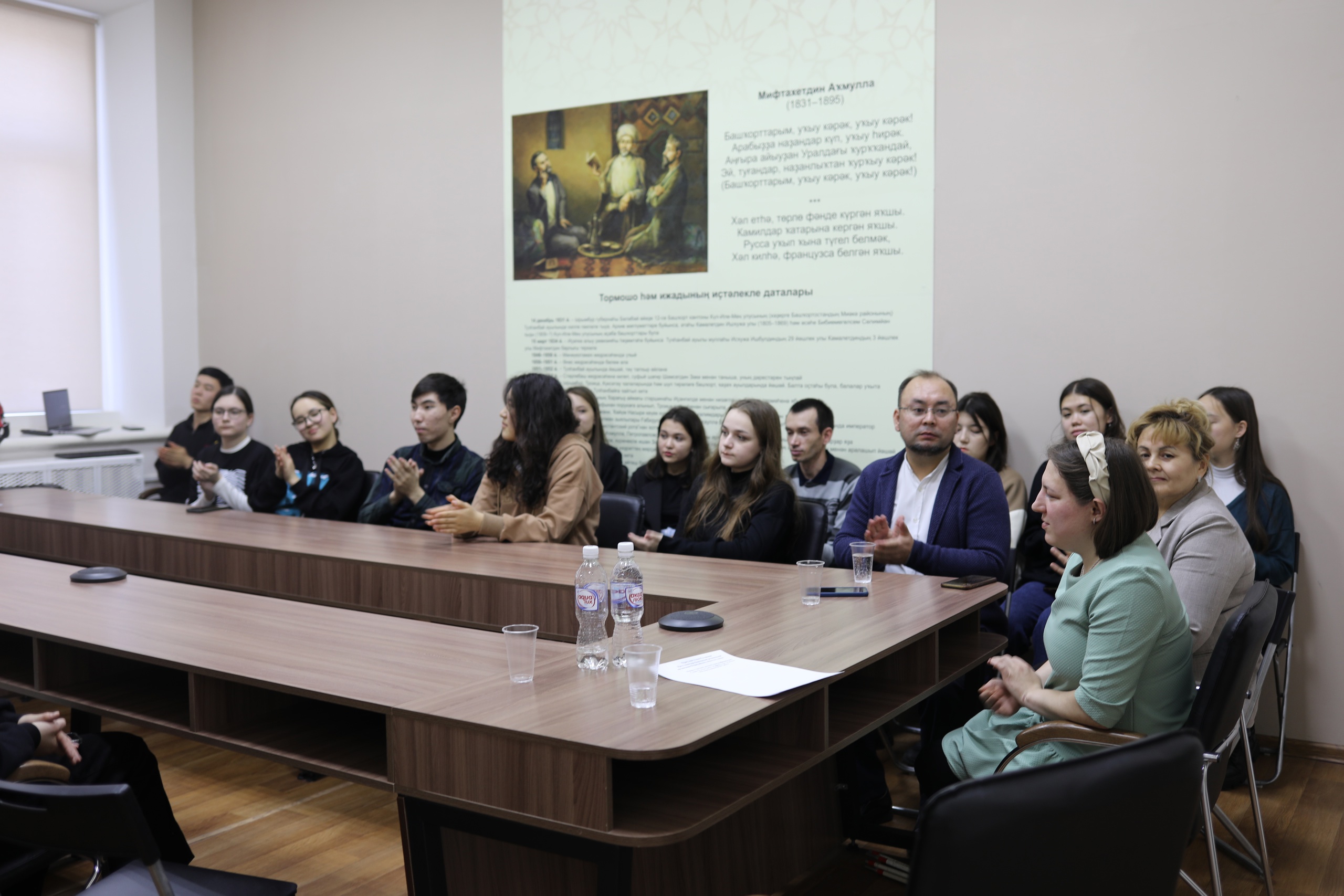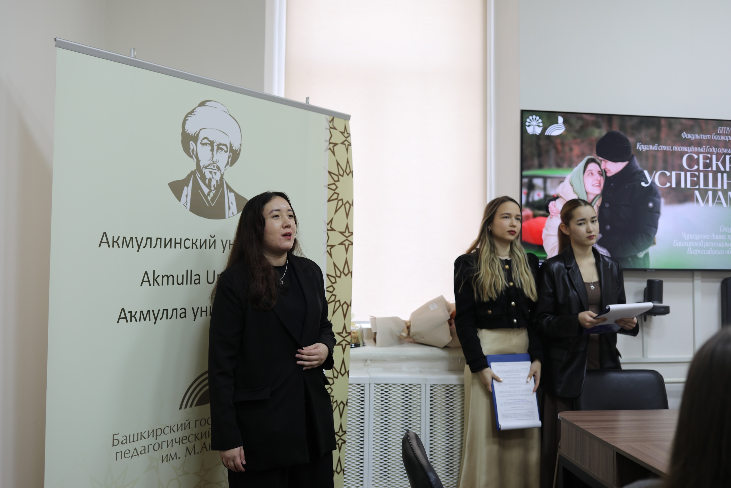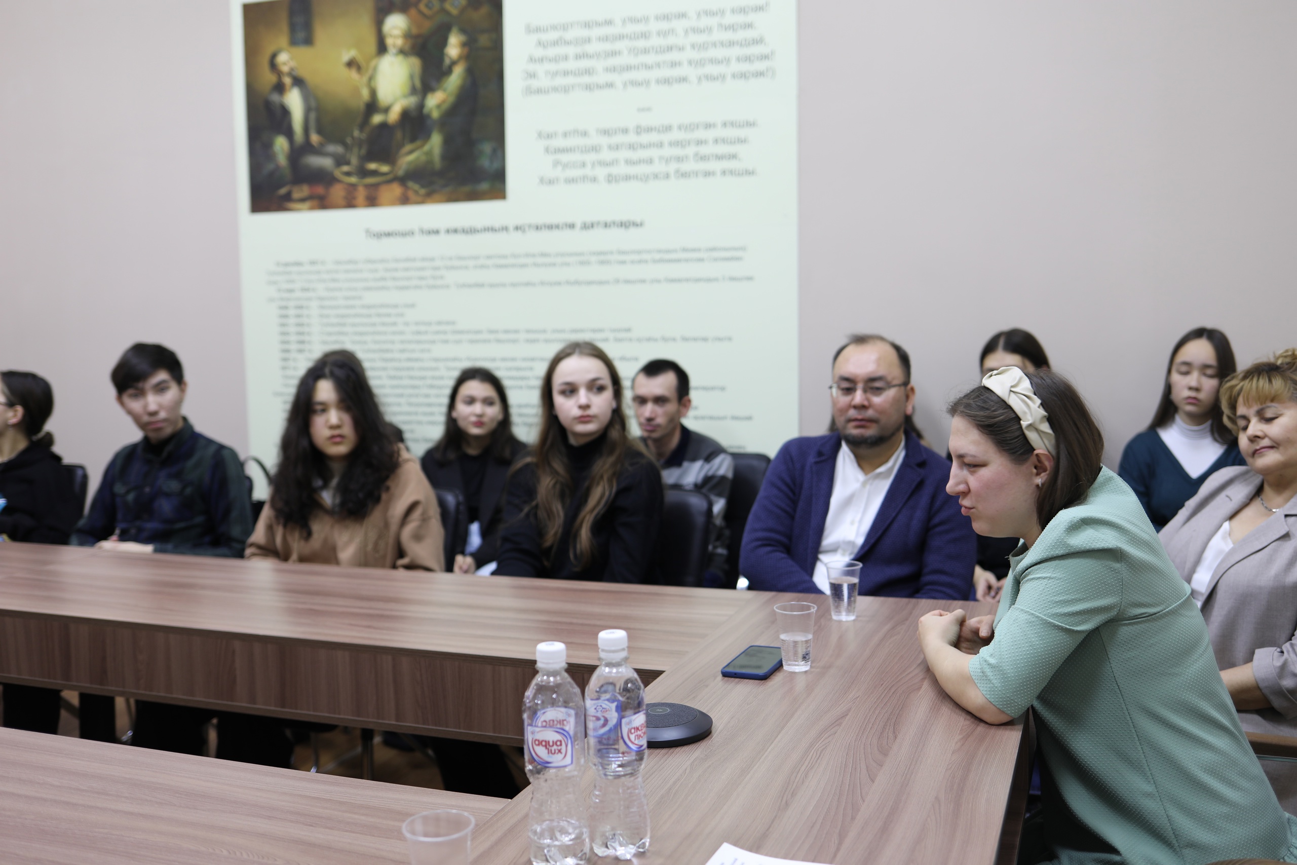 Ведущими встречи стали студенты факультета башкирской филологии гр. ПОАЯ -ВЯ-21-23 Хисамиева Карина и Биембетова Азалия.