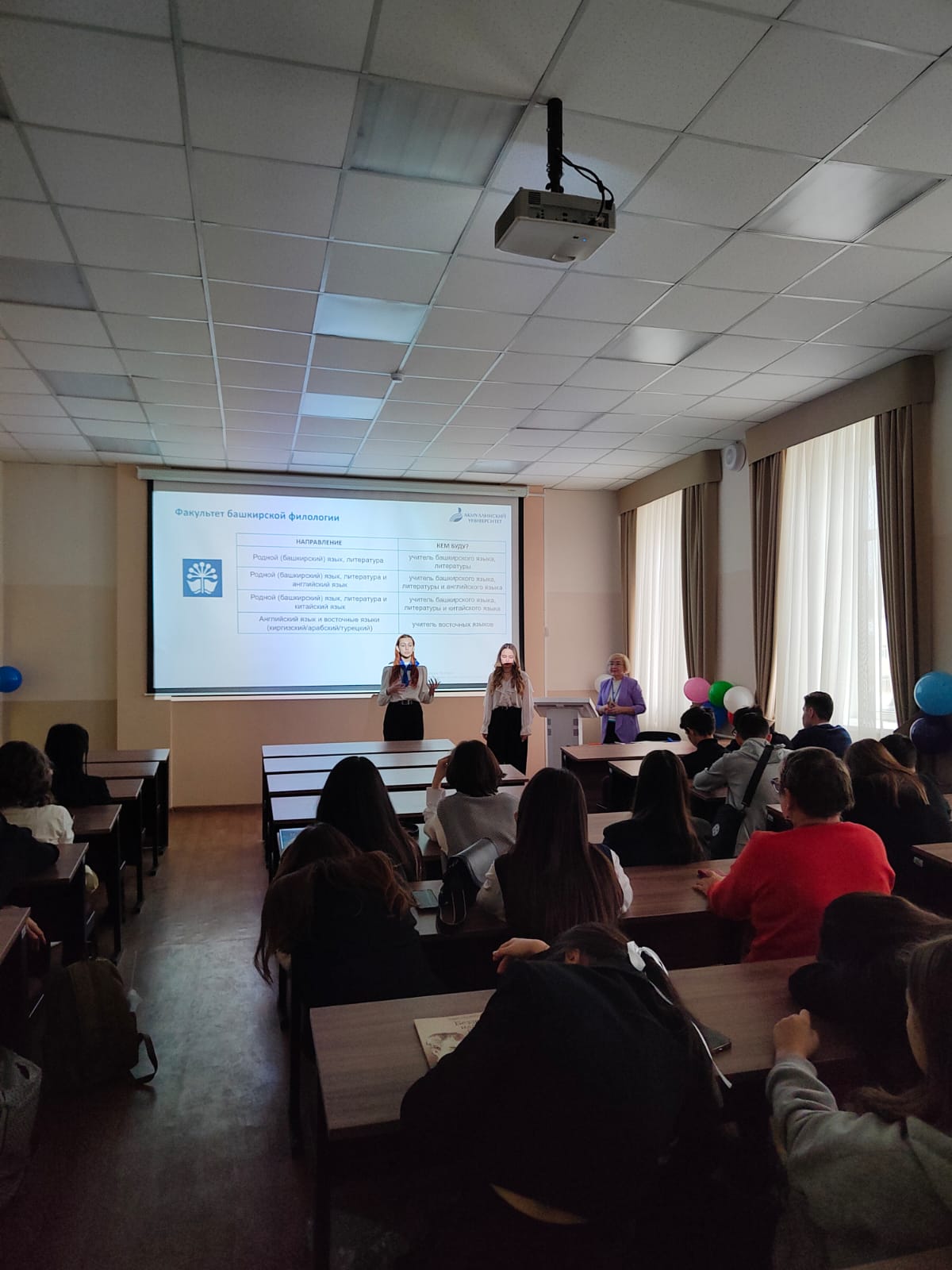 15 ноября 2024 года в рамках Республиканского юношеского педагогического форума «Педагогические горизонты» обучающиеся X и XI  классов БРГИ № 1 им. Р. Гарипова, УГБГ № 20 им. Ф.Х. Мустафиной и Башкирской гимназии № 158 им. М. Карима посетили мастер-классы «Твори и развивайся», организованные студентами факультета башкирской филологии. Для школьников были проведены тематические квесты, квизы и развлекательные мероприятия