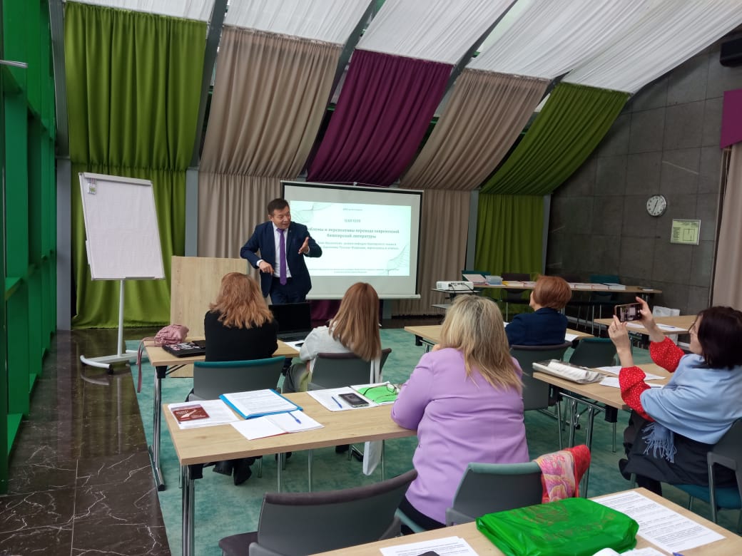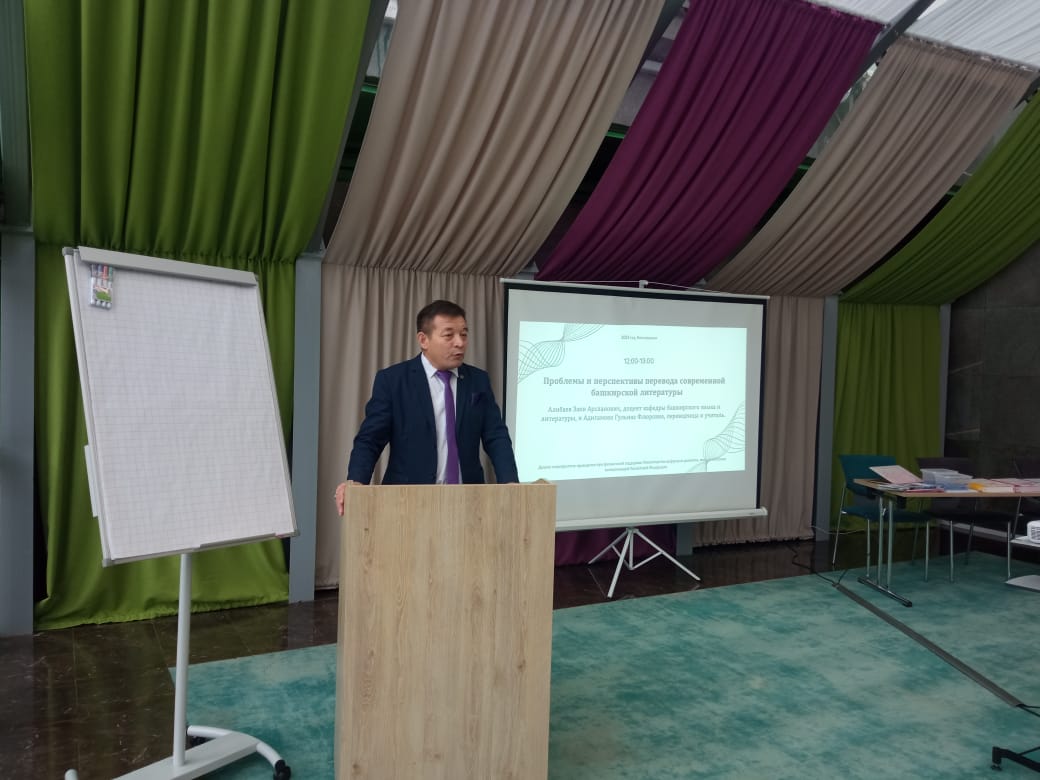 В рамках форума презентация программы поддержки национальных литератур народов РФ. Доцент кафедры башкирского языка и литературы Заки Арсланович Алибаев и Гульназ Флюровна Адигамова ознакомили участников форума состоянием современной башкирской литературы, особенностями перевода поэзии и прозы с башкирского языка на русский язык.