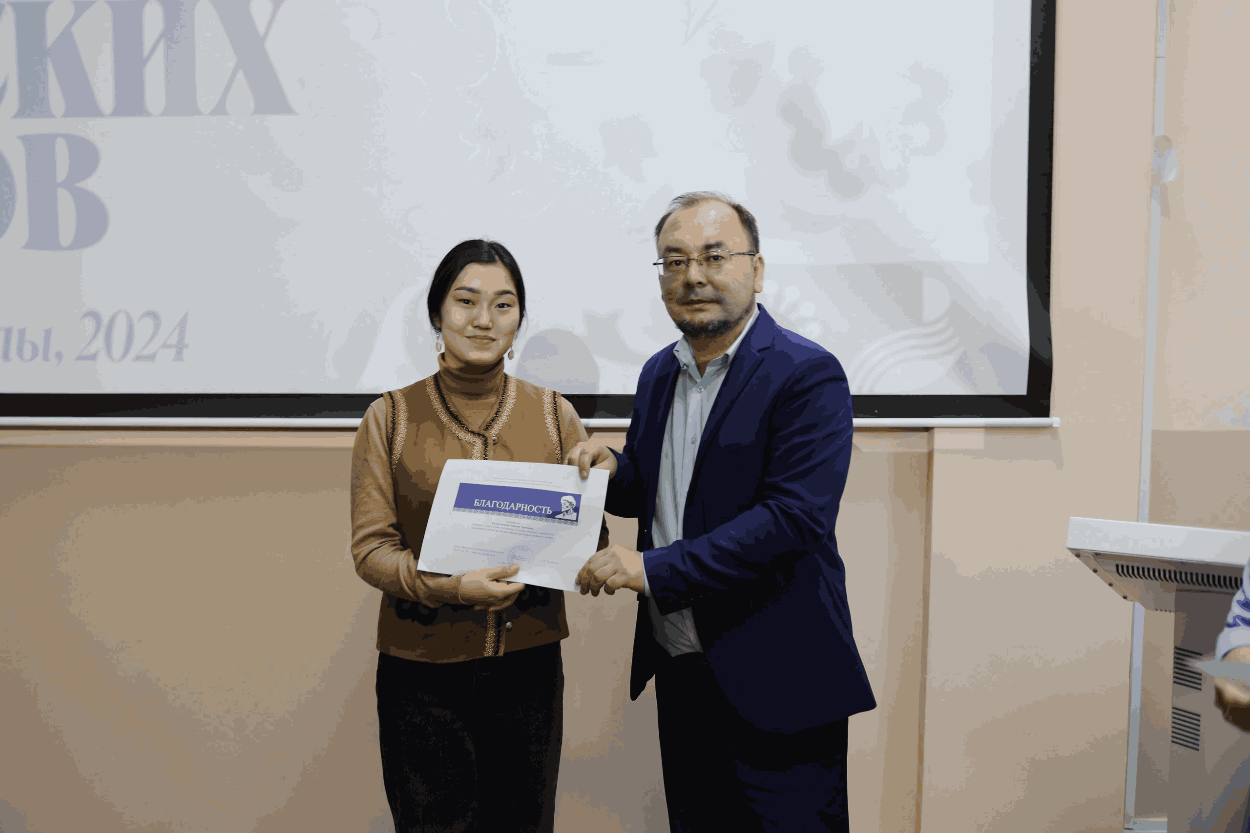 В конце прекрасного вечера заведующий кафедрой тюркской и восточной филологии Куланчин Айтуган Юмабаевич и к.филол.наук, доцент Султакаева Раушания Абдулхаевна вручили выступающим и организаторам благодарственные письма от имени декана факультета Хусаиновой Л.М.