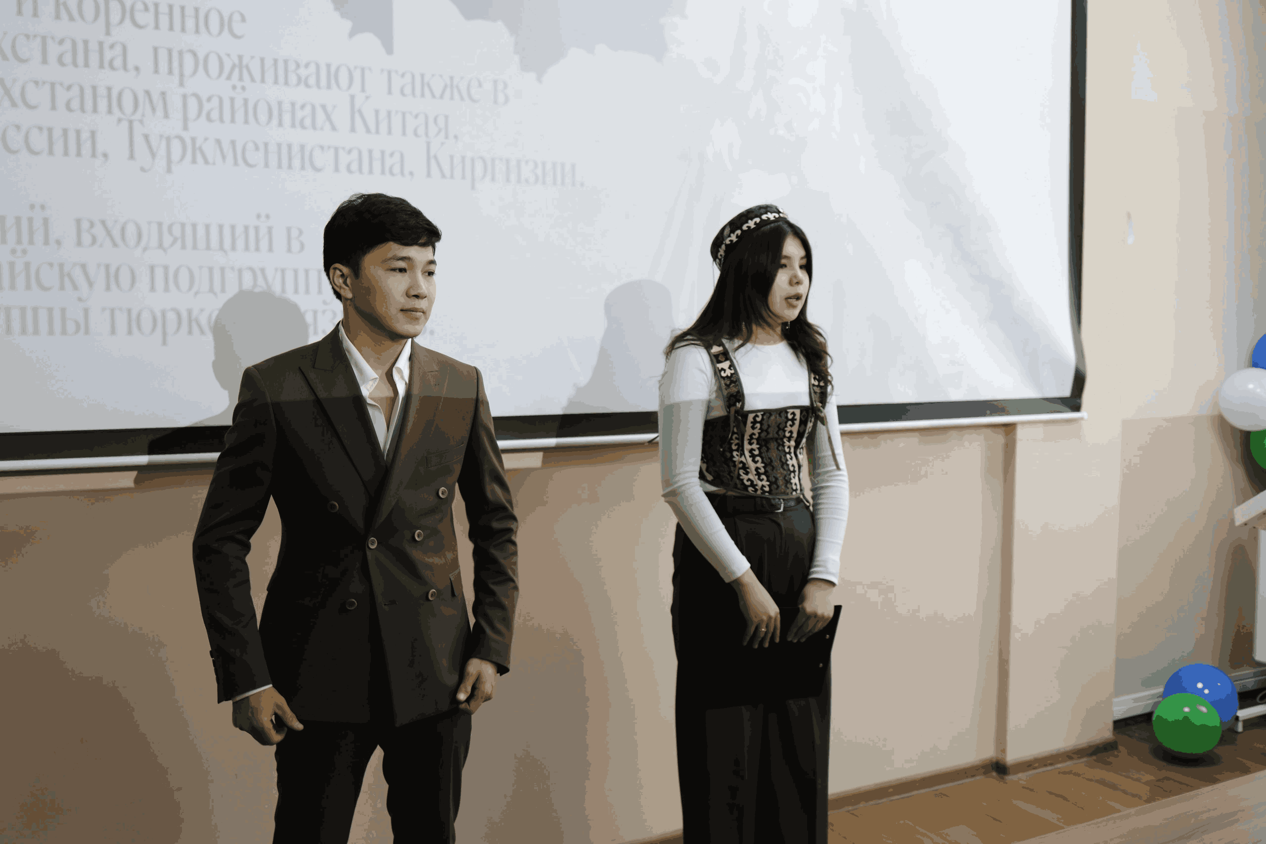 В нашем Акмуллинском также обучаются и представители казахского языка. Поделились красотой своего родного языка студентка института физики, математики, цифровых и нанотехнологий Молдохунова Рамина и магистрант института физической культуры и здоровье человека Тамерлан Омрекул. Они выразительно прочитали стихотворение известного поэта Казахстана.