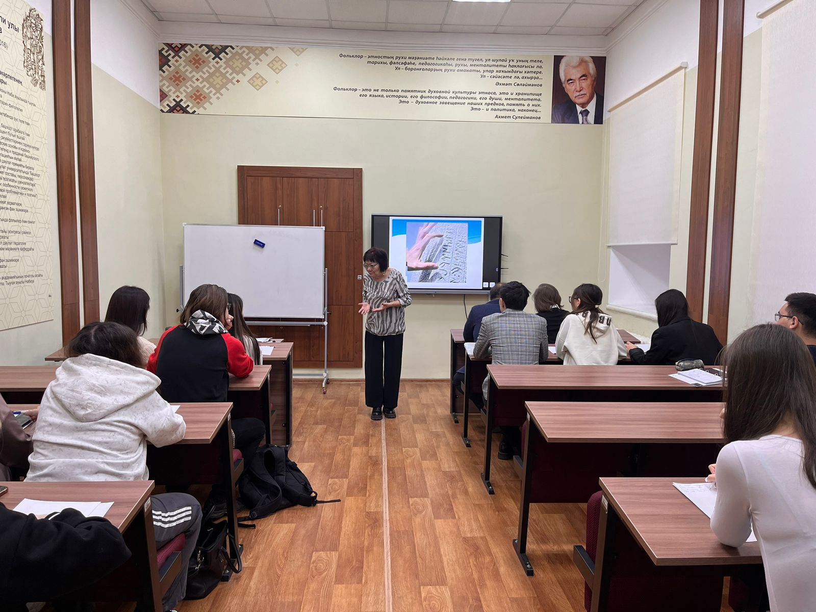 Лариса Николаевна за время стажировки провела для студентов факультета башкирской филологии занятия по рунической письменности. Ее лекция была посвящена истории рунического письма, истории его дешифровки и последним успехам исследователей. Студенты узнали об основных правилах чтения рунических надписей, их значении в контексте тюркской культуры и роли в филологических и исторических исследованиях.