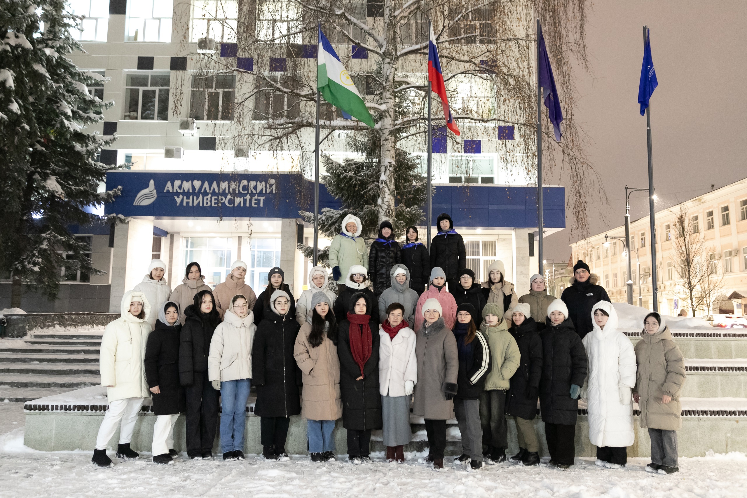 20 января на площади перед Акмуллинским университетом состоялась традиционная торжественная церемония поднятия государственных флагов Российской Федерации, Республики Башкортостан, флагов Министерства просвещения Российской Федерации и Акмуллинского университета. В ней приняли участие студенты и преподаватели факультета башкирской филологии БГПУ имени М. Акмуллы.