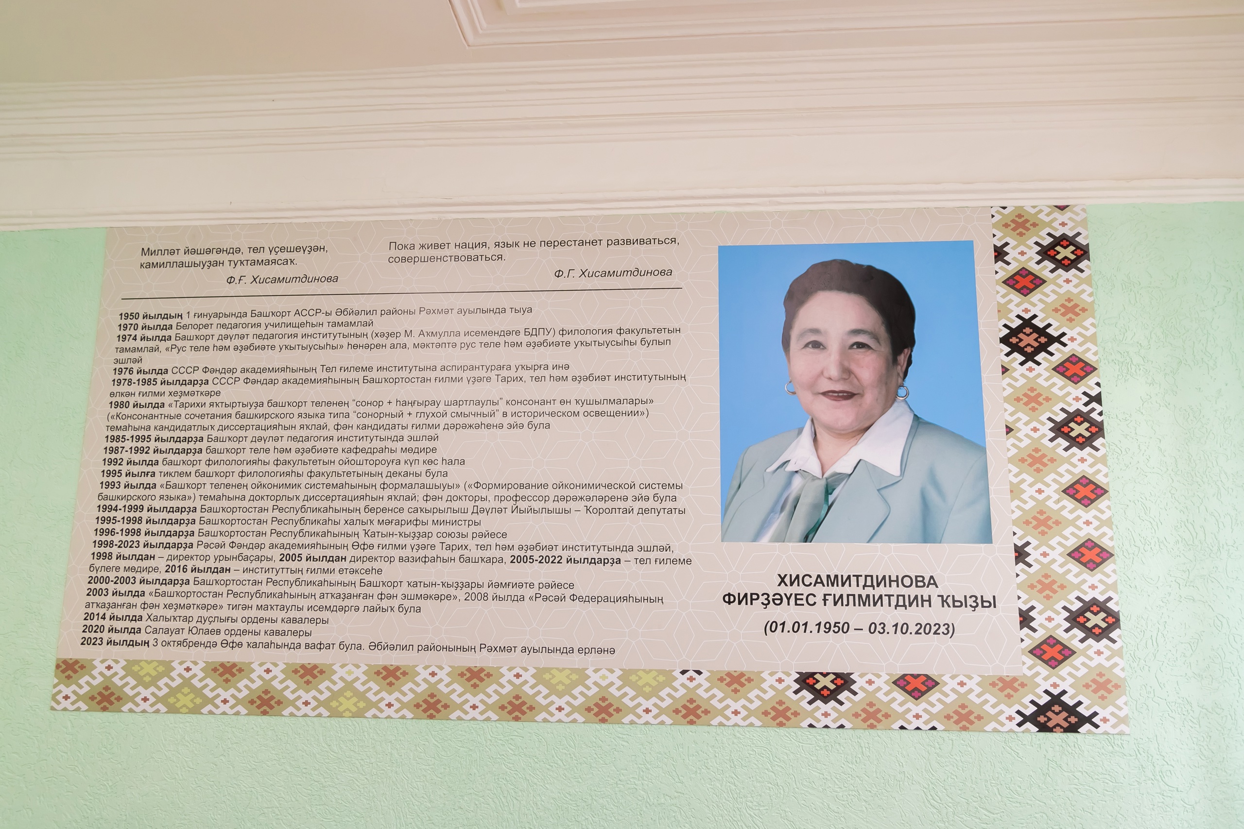 Церемония собрала множество гостей, среди которых были представители университета, коллеги, студенты, близкие родственники и дети Фирдаус Гильмитдиновны. На открытии звучали слова благодарности за ее труд и преданность делу, благодаря которым многие поколения студентов получили знания и вдохновение для дальнейших исследований и практической деятельности в области башкирской филологии. Украшением торжественной церемонии стали творческие номера в исполнении руководителя Научно-исследовательского центра Башкирского фольклора Розалии Султангареевой и студентов ФБФ.