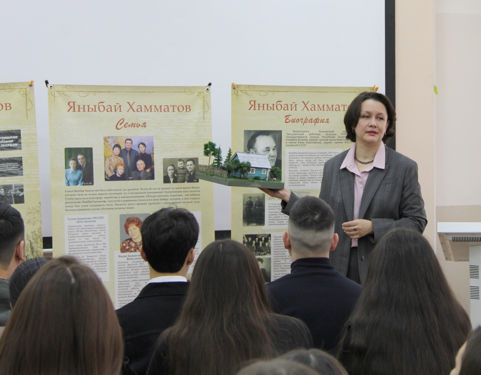 Во время встречи Алсу Анваровна поделилась с студентами вторых и третьих курсов творческим путем Яныбая Хамматова и своими семейными воспоминаниями о нем, как о дедушке. Студенты активно задавали вопросы, а дочь Алсу Анваровны порадовала всех исполнением башкирской народной песни «Хандугас» в качестве подарка.