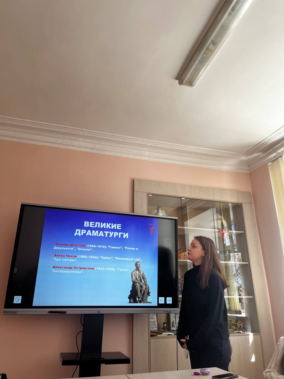 Руководитель РДДМ ФБФ Калмыкова Мария провела урок-лекцию, посвященную дню театра