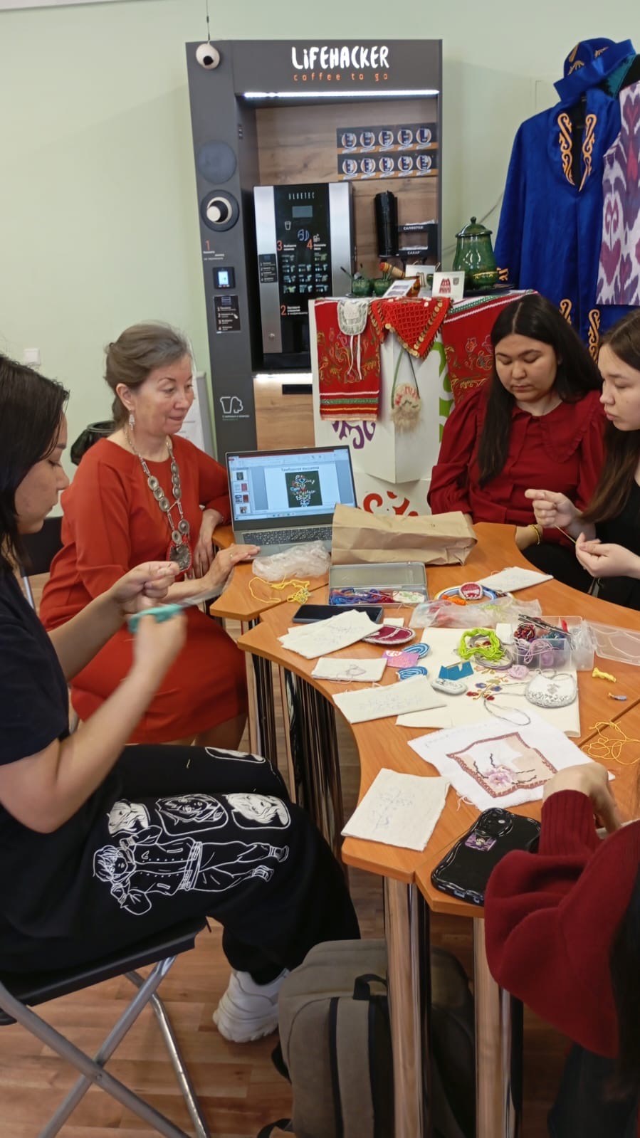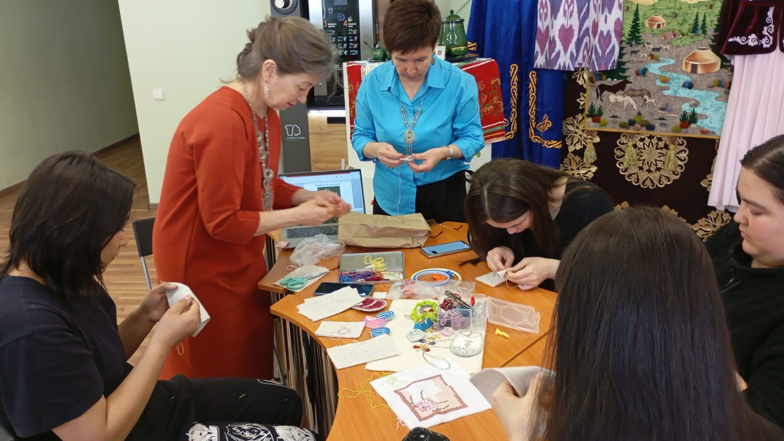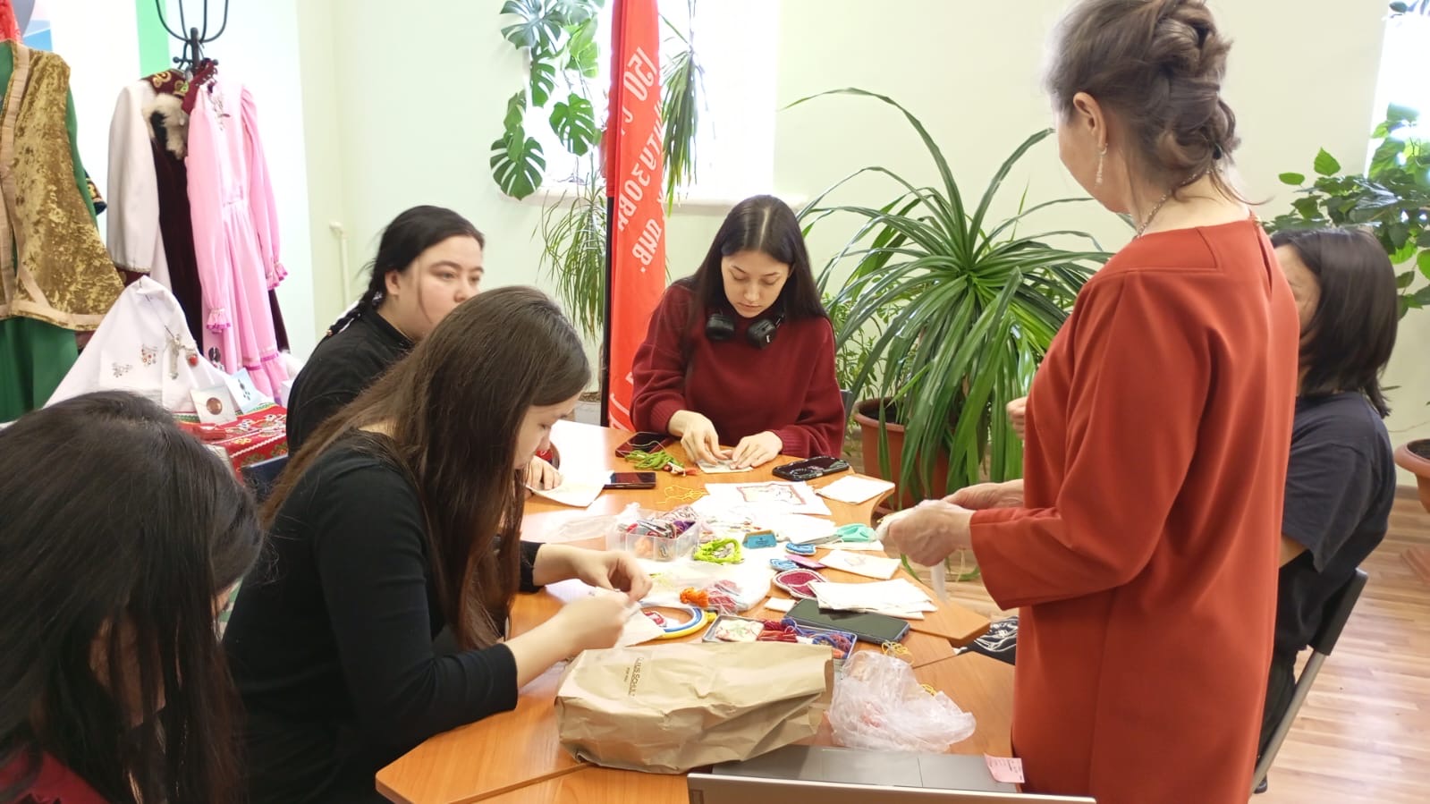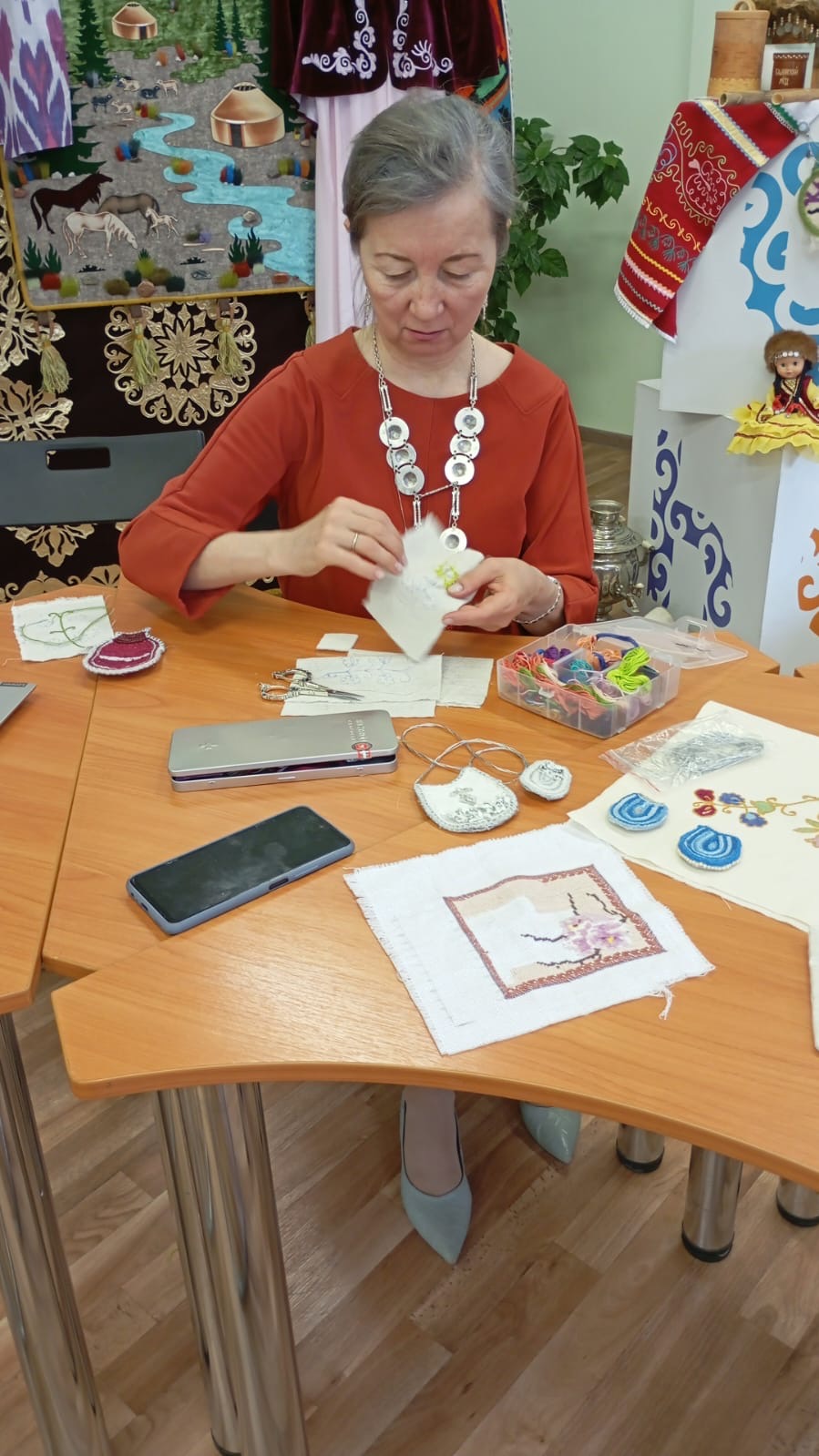 В рамках празднования Дня национальных костюмов Республики Башкортостан Шараповой Гулькай Рахимьяновной был организован открытый мастер-класс по тамбурной вышивке «Вышивка как элемент украшения башкирского костюма». Участники смогли не только увидеть, как создаются красивые узоры, но и попробовать свои силы в этом искусстве.