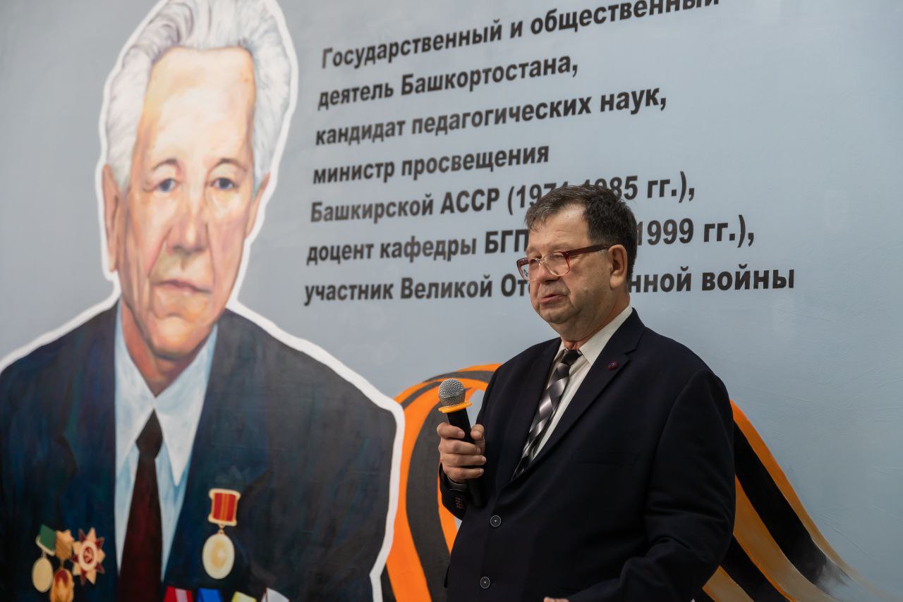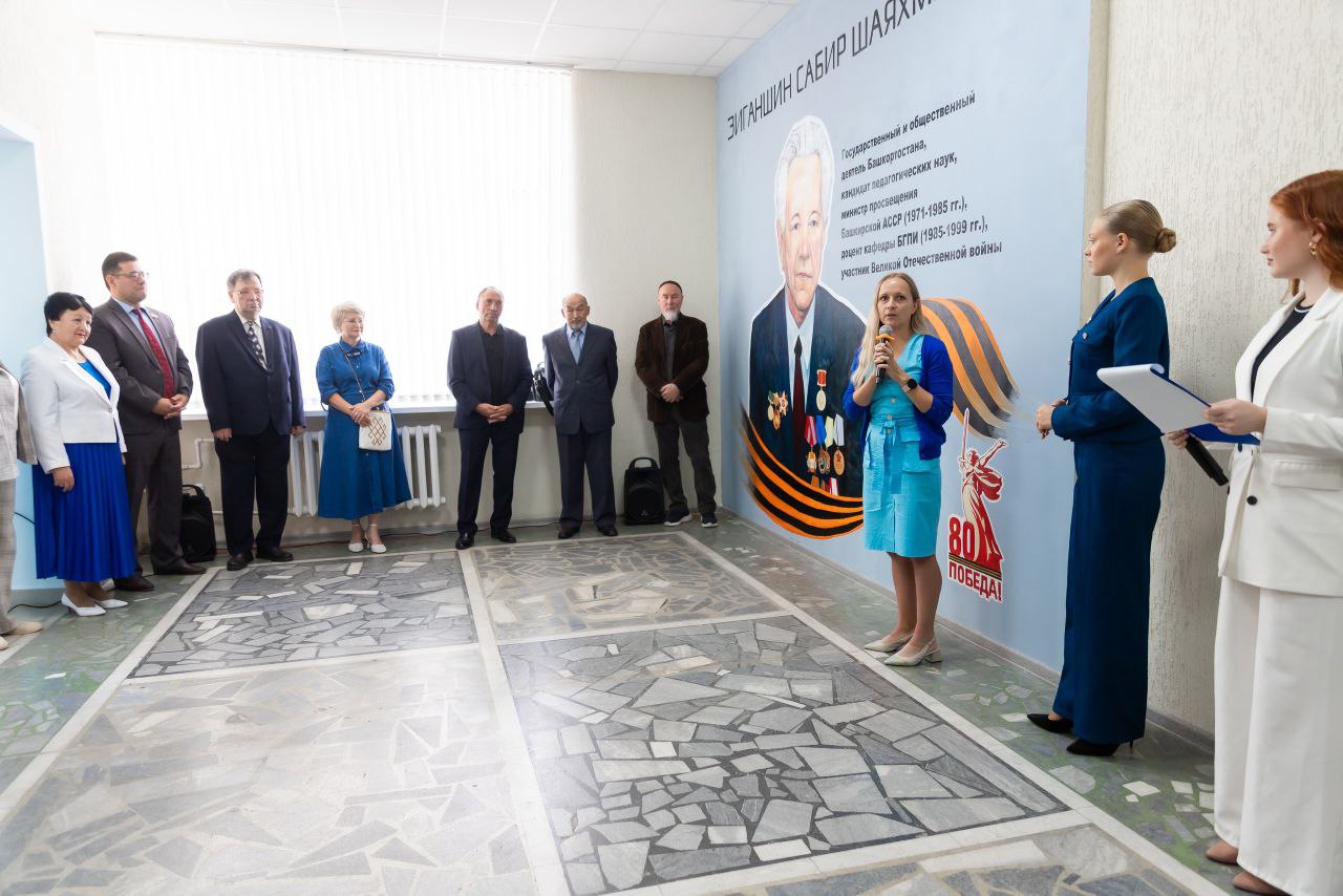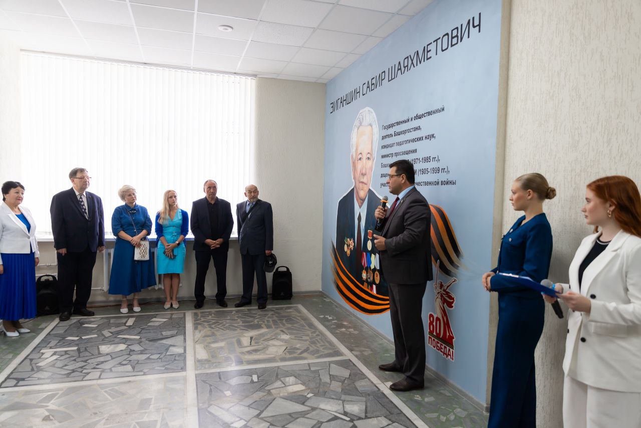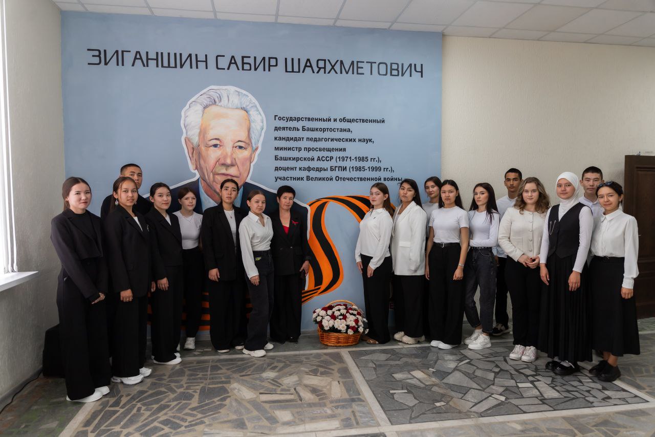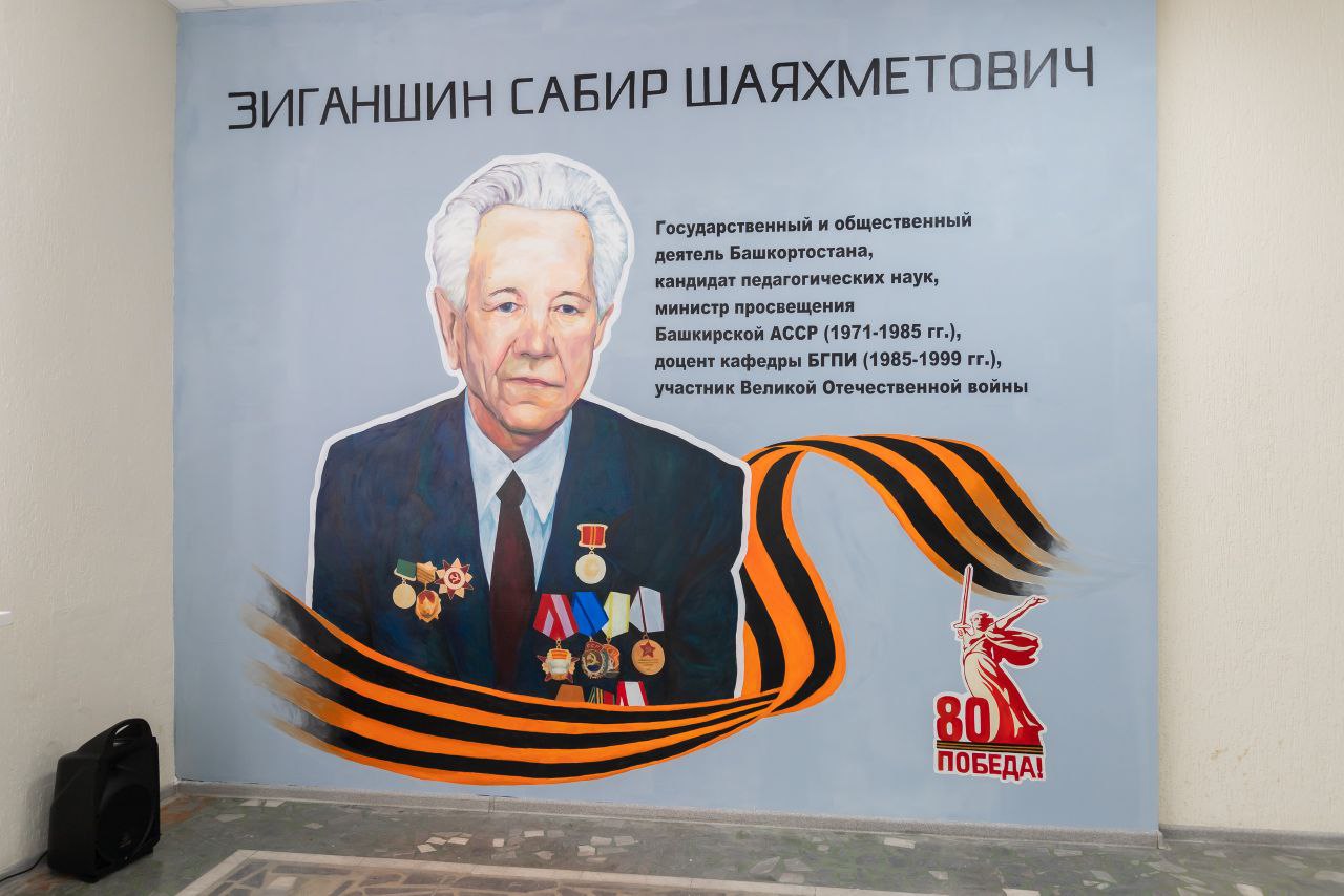2 сентября в Акмуллинском университете в год памятной даты — 80-летия Победы в Великой Отечественной войне был открыт мурал, посвященный участнику ВОВ, министру просвещения Республики Башкортостан, доценту кафедры научной организации управления школами БГПУ, активисту ветеранского движения — Сабиру Шаяхметовичу Зиганшину. На открытие также были приглашены студенты 1 курса факультета башкирской филологии.