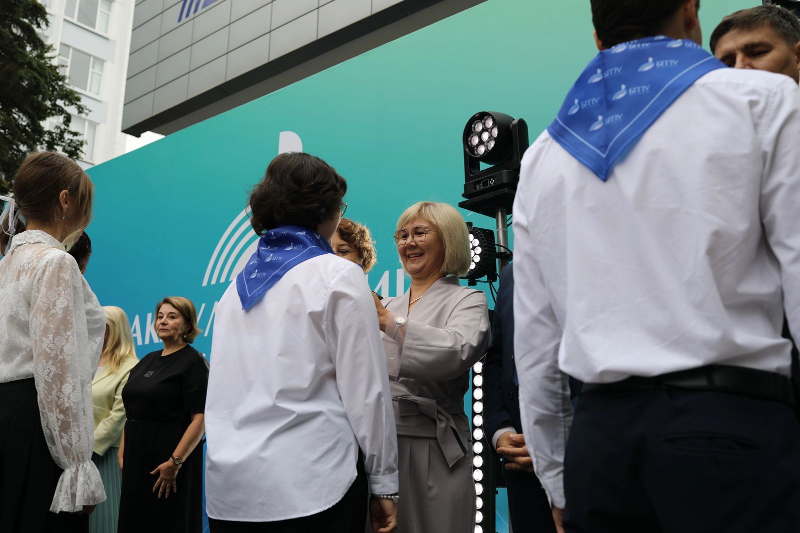 По университетской традиции студенты возложили цветы к памятнику Мифтахетдину Акмулле, подписали Кодекс молодого педагога, подтверждая свою готовность следовать профессиональным принципам — уважению, честности, взаимопомощи и стремлению к развитию. Руководители факультетов повязали новичкам фирменные галстуки, а старшекурсники торжественно передали им флаги учебных подразделений.